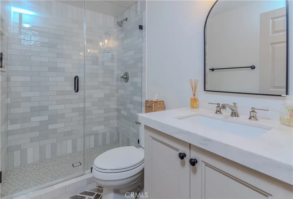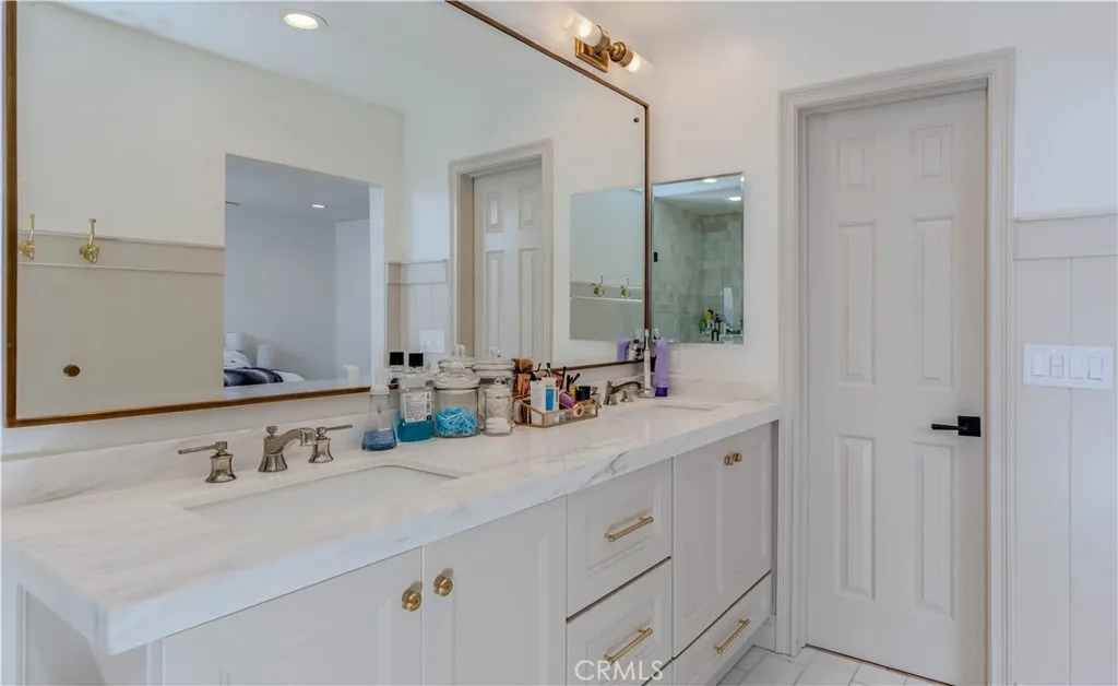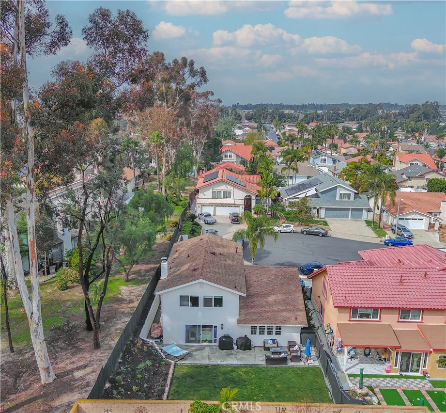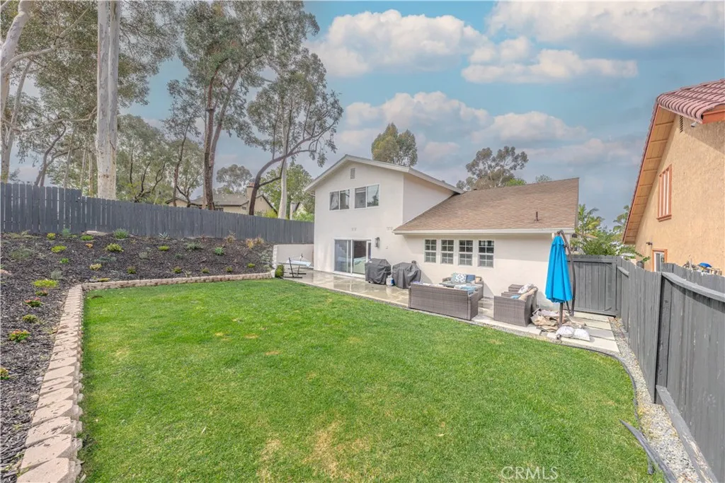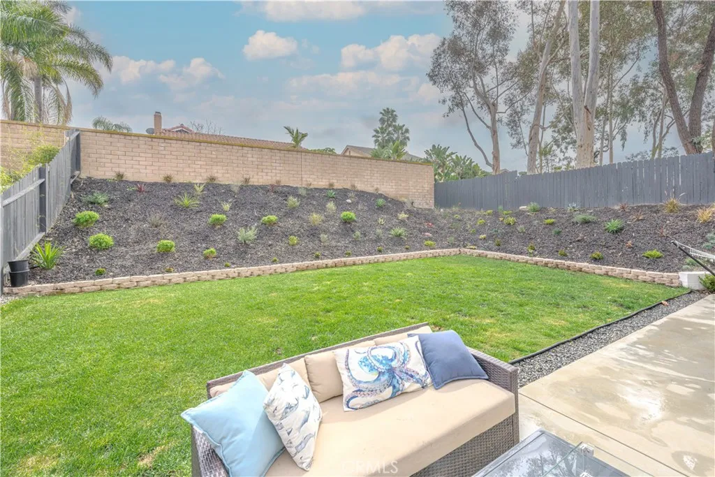 Nestled within a serene cul-de-sac on a desirable corner lot, this captivating home in the picturesque foothills of Mission Viejo offers a blend of modern elegance and comfortable living. Totally remodeled in 2022 and featuring 4 spacious bedrooms and 3 beautifully appointed bathrooms, this residence boasts an impressive 2,290 square feet of thoughtfully designed living space with luxury vinyl flooring flowing throughout the spaces. At the heart of the home lies the stunning entertainer's kitchen, a true chefs delight with gorgeous marble countertops and a generous island that invites friends and family to gather. The abundance of counter and cupboard space adorned with exquisite gold accent finishes add a touch of sophistication. The kitchen effortlessly transitions into the warm and inviting family room, which is complete with a cozy fireplace, creating a perfect atmosphere for relaxation and family gatherings. Convenience is key with a thoughtfully designed downstairs bedroom and bathroom, ideal for guests or family members looking for privacy. The home is characterized by soaring ceilings that enhance the spacious feel and a step-up living room that adds a touch of architectural charm. Venture up the custom stairs to the tranquil primary bedroom, a spacious sanctuary that features stylish barn doors leading to an elegant ensuite bathroom. This luxurious space showcases modern fixtures, including a dual sink vanity and a large walk-in shower, providing a spa-like experience. The expansive walk-in closets, equipped with custom built-ins, offer ample storage to keep all yo