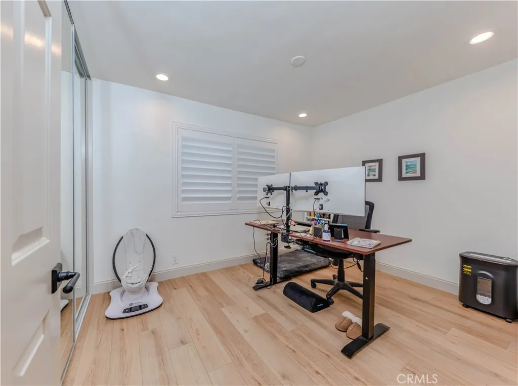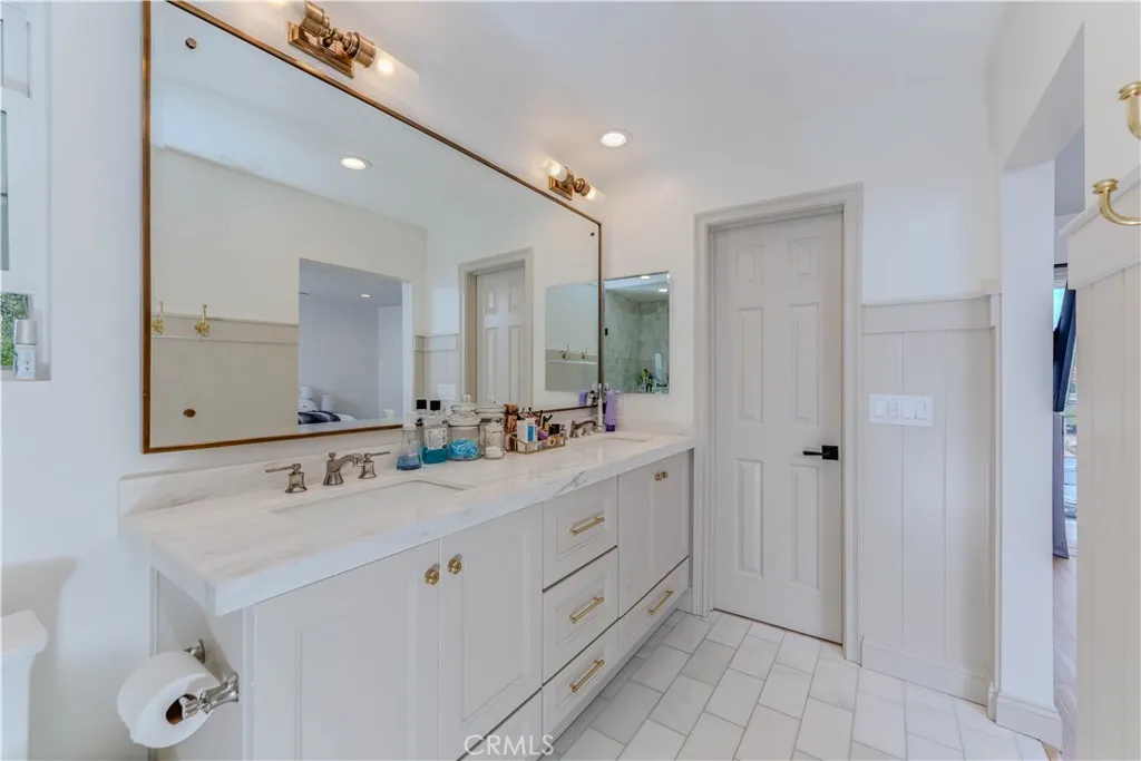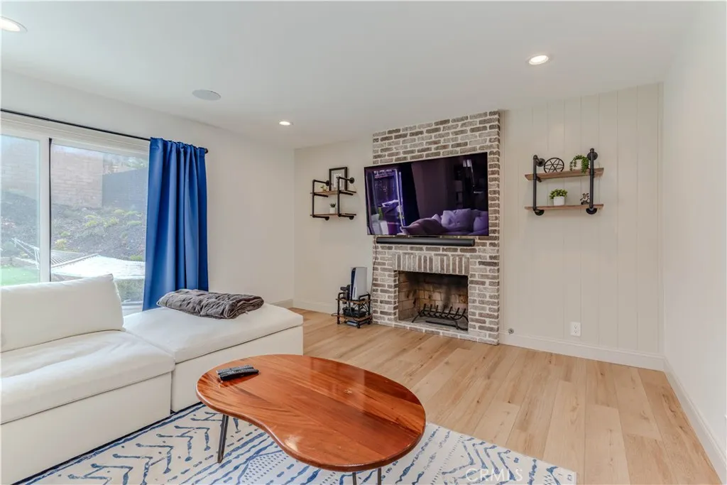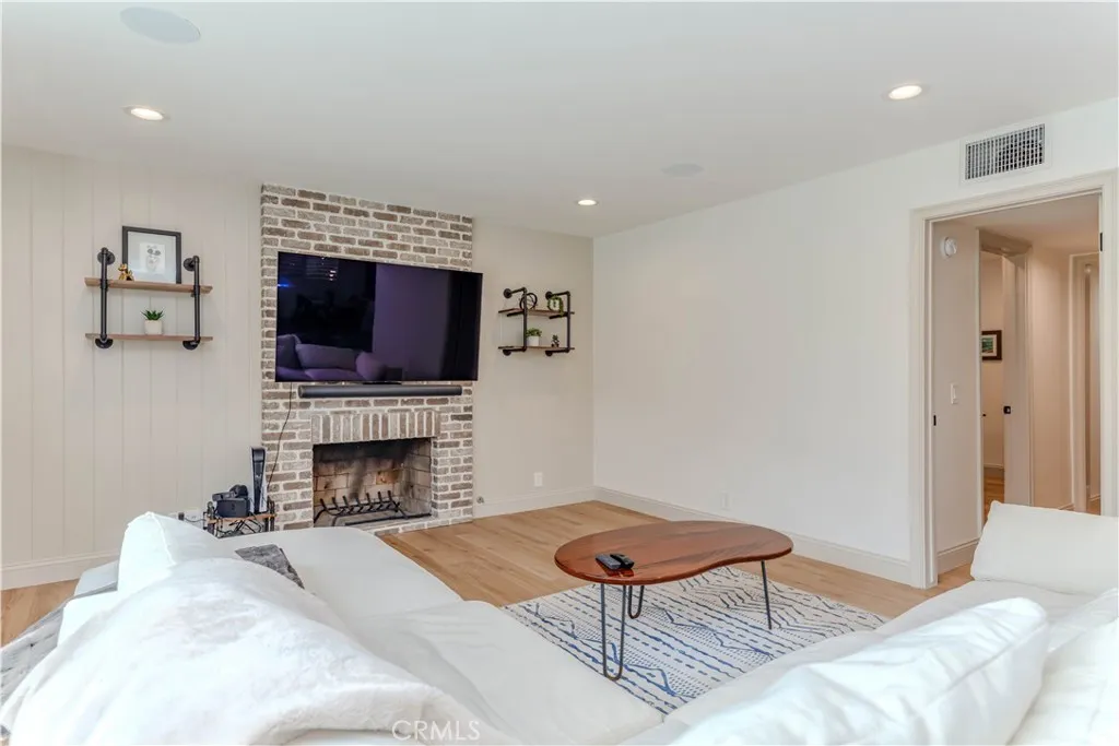 Nestled within a serene cul-de-sac on a desirable corner lot, this captivating home in the picturesque foothills of Mission Viejo offers a blend of modern elegance and comfortable living. Totally remodeled in 2022 and featuring 4 spacious bedrooms and 3 beautifully appointed bathrooms, this residence boasts an impressive 2,290 square feet of thoughtfully designed living space with luxury vinyl flooring flowing throughout the spaces. At the heart of the home lies the stunning entertainer's kitchen, a true chefs delight with gorgeous marble countertops and a generous island that invites friends and family to gather. The abundance of counter and cupboard space adorned with exquisite gold accent finishes add a touch of sophistication. The kitchen effortlessly transitions into the warm and inviting family room, which is complete with a cozy fireplace, creating a perfect atmosphere for relaxation and family gatherings. Convenience is key with a thoughtfully designed downstairs bedroom and bathroom, ideal for guests or family members looking for privacy. The home is characterized by soaring ceilings that enhance the spacious feel and a step-up living room that adds a touch of architectural charm. Venture up the custom stairs to the tranquil primary bedroom, a spacious sanctuary that features stylish barn doors leading to an elegant ensuite bathroom. This luxurious space showcases modern fixtures, including a dual sink vanity and a large walk-in shower, providing a spa-like experience. The expansive walk-in closets, equipped with custom built-ins, offer ample storage to keep all yo
