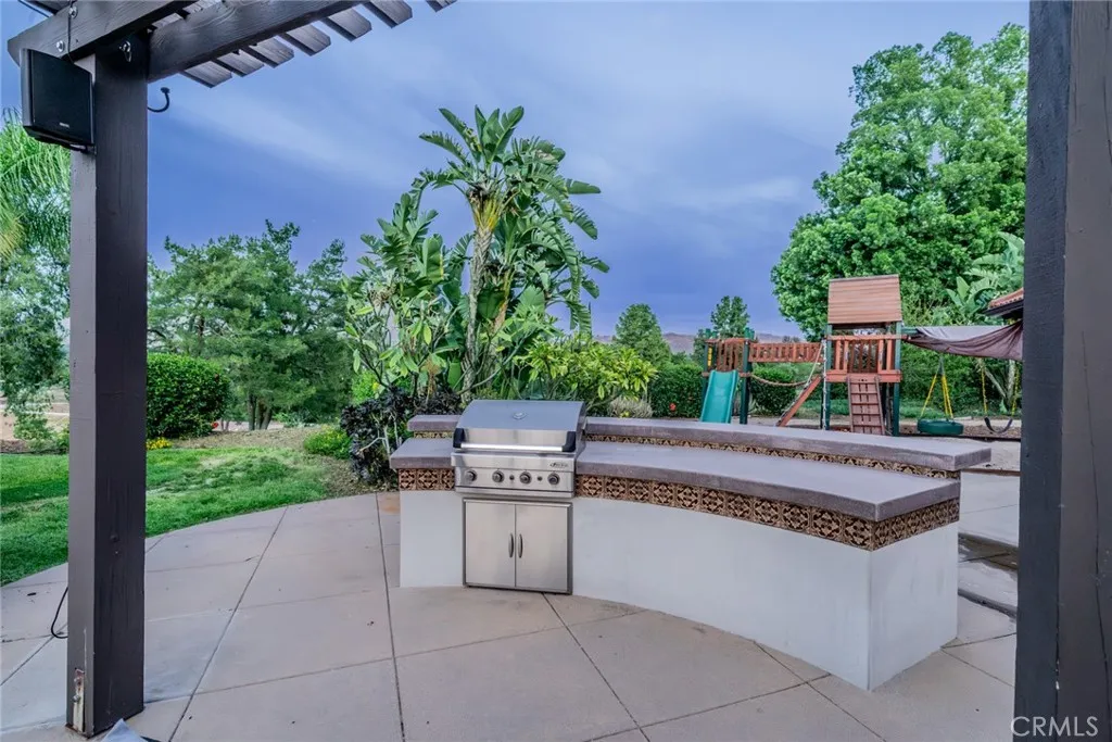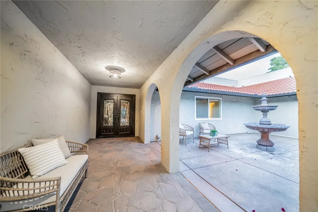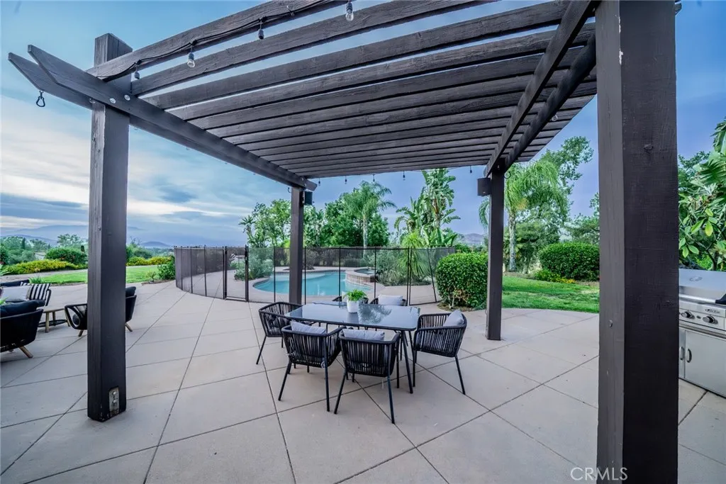 Nestled at the end of a peaceful cul-de-sac in a desirable Riverside neighborhood, this exquisite pool estate home offers a rare combination of privacy, elegance, and expansive outdoor living. Sits on an impressive 45,738 ft. lot, this beautifully appointed residence features 4 spacious bedrooms, 2.5 bathrooms, and a 2-car attached garage. From the moment you enter, the home reveals its distinctive character and warm ambiance. The living room is a showpiece, highlighted by dramatic exposed beam ceilings and a striking Spanish-style fireplace, offering a timeless focal point and an atmosphere perfect for relaxing evenings or elegant gatherings. The open kitchen blends style with functionality, featuring beautiful shaker cabinetry, elegant quartz countertops, a stylish tile backsplash, and stainless-steel appliances. Each bedroom offers generous proportions and soft carpet flooring, creating comfortable retreats for rest and relaxation. The primary suite serves as a private sanctuary, complete with a well-appointed bathroom featuring dual vanities, quartz countertops, bronzed fixtures, and a spacious standing shower. The additional bathrooms showcase custom tile work with mosaic accents, modern vanities, and carefully selected finishes that elevate the homes overall design. Step outside into your own private resort-style backyard, where an expansive finished concrete patio sets the stage for unforgettable outdoor living. Enjoy warm California days by the sparkling pool and spa, host evening gatherings around the custom fire pit, or relax beneath the gazebo while taking in the