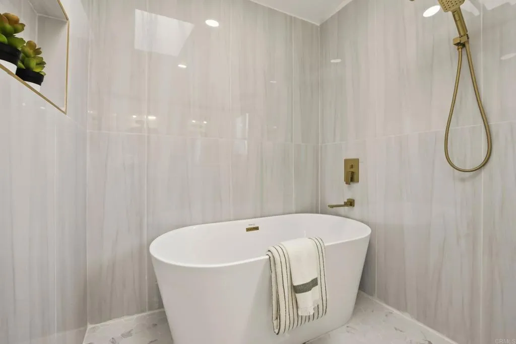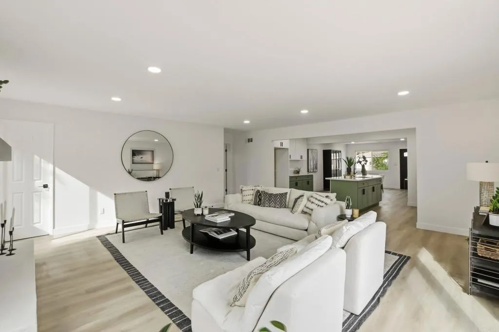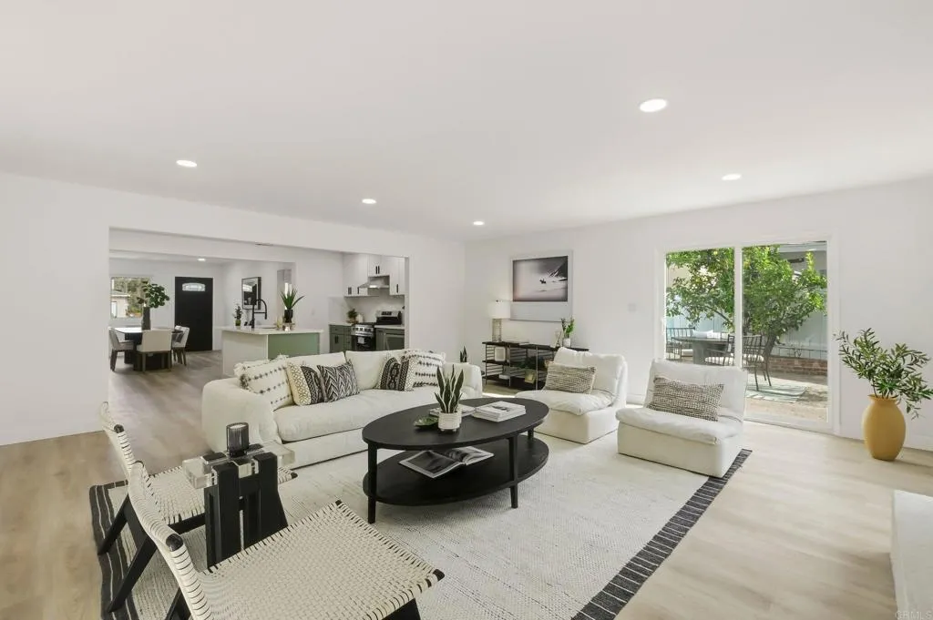 Fully renovated and move-in ready, this beautifully reimagined 4-bedroom, 3-bath residence in La Mesa offers modern style, natural light, and a functional open-concept layout. Thoughtfully updated throughout, the home features a beautifully designed kitchen with a large center island, stylish finishes, and seamless flow between the living, dining, and kitchen areas. The spacious primary suite offers a spa-inspired bath with dual vanities, a soaking tub, and a separate walk-in shower. Additional highlights include updated bathrooms, new windows, new roof, and a floor plan ideal for both everyday living and entertaining. The backyard offers a clean and versatile outdoor space to relax, gather, or personalize. A rare opportunity to own a turnkey, extensively renovated home in a desirable La Mesa location.