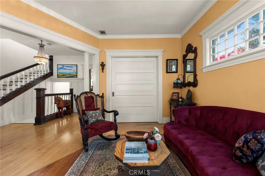 Nestled in the historic Willmore neighborhood, this stunning 1906 Victorian residence, named the Flossie Lewis House, blends classic architectural character with thoughtful updates throughout its approximately 2,500+ sq ft of living space. Inside you will find rich hardwood floors, elegant crown moldings, and a warm, inviting layout designed for both everyday living and entertaining. The main level features a formal living room and a refined dining room separated by a charming pocket doorpreserving the homes original character while offering flexible flow. The updated kitchen is both stylish and functional, complete with dark lower cabinetry, crisp white countertops, stainless steel appliances, a large farmhouse sink, and bright white upper cabinets. A dedicated laundry room provides stacked units and abundant storage. The downstairs den showcases dramatic dark wood beam ceilings, a full wet bar, and French doors that open to the backyard, creating the perfect indoor-outdoor entertaining space. The downstairs bedroom offers comfort and privacy with its own en suite bathroom featuring a classic clawfoot tub, pedestal sink, subway tile, and large sun-filled windows. The Upper level includes three additional bedrooms, including one with access to a private balconyideal for a spacious office or creative retreat. The guest bathroom echoes the homes vintage charm with another clawfoot tub and a separate walk-in shower. Outside, the lushly landscaped backyard is a true sanctuary, filled with vibrant flowers, mature plants, and multiple areas to relax and unwind. A charming wooden