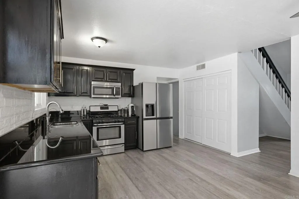 Welcome to this inviting home situated on a spacious corner lot. Offering 4 bedrooms and 2 full baths, Master bedroom with Jack-and-Jill bathroom on the first floor this property combines comfort, privacy, and functionality. Vaulted ceilings create an open and airy feel, laminate wood flooring adds warmth and style throughout. The low-maintenance yard features artificial turf, light landscaping, and mature fruit trees, creating a great space to relax or entertain. Spacious backyard with paver patio, a wonderful opportunity to enjoy space, privacy, and convenience in a desirable hillside setting.