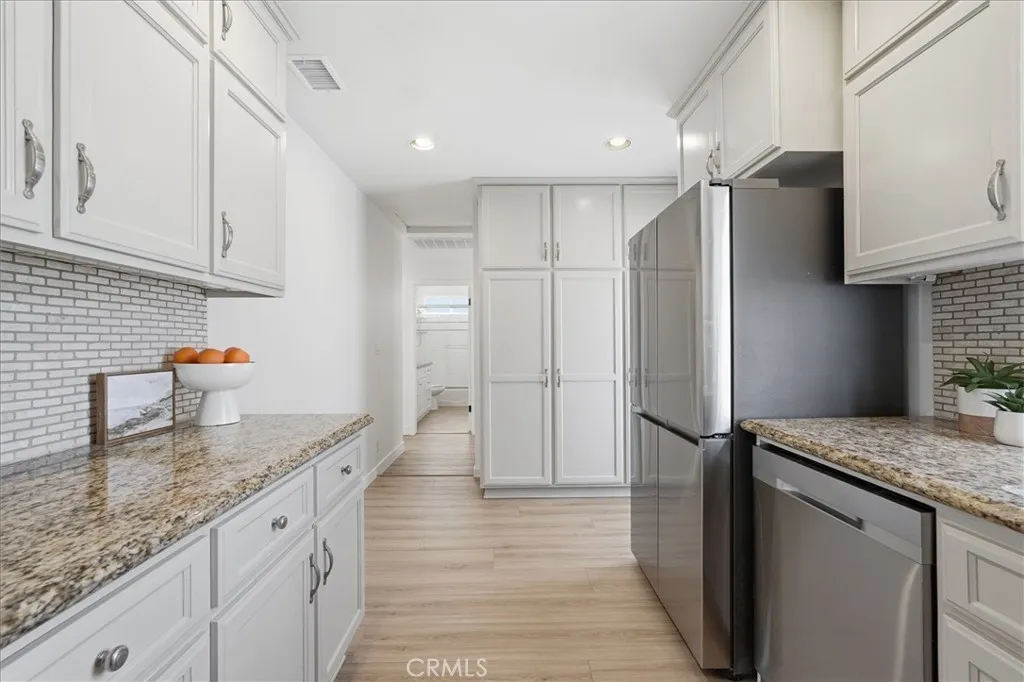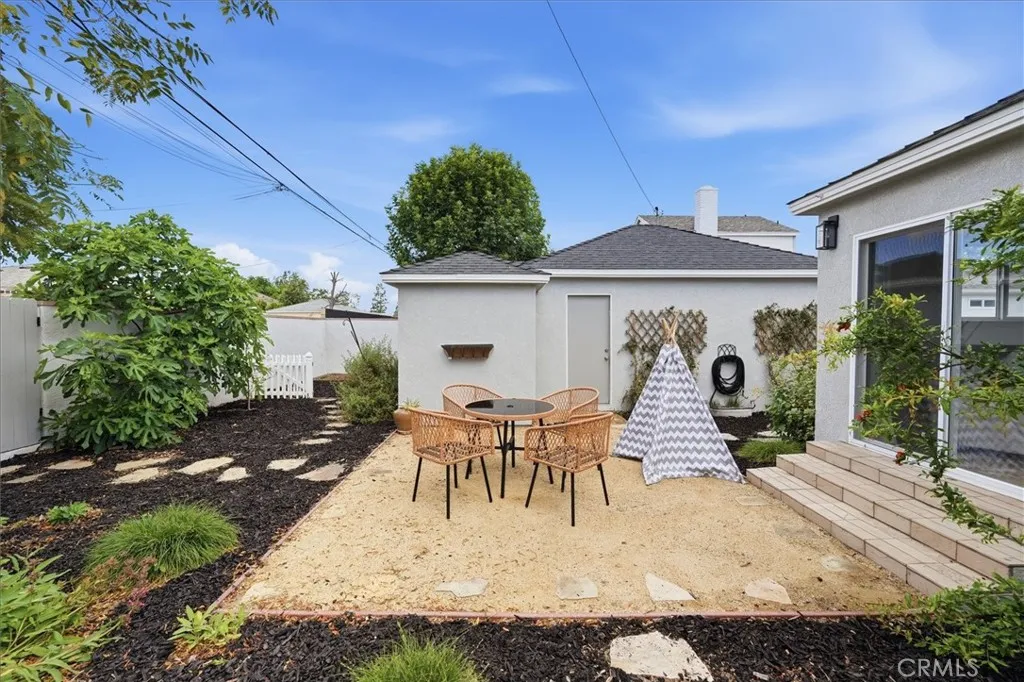 Beautifully updated Artcraft Manor 3-bedroom, 2-bath home blending classic charm with thoughtful modern upgrades on a quiet, welcoming street. Recently redone hardwood floors, fresh exterior paint, updated hallway bath, and a remodeled primary bath create a move-in ready feel. Bright interiors flow from the living room to the dining area and updated kitchen featuring granite countertops, custom backsplash, stainless steel appliances, abundant cabinetry, and a bay window. All three bedrooms are spacious, including a primary suite with walk-in closet and en-suite bath. Additional upgrades include a 200-amp electrical panel, central heating and air conditioning via Nest, Tesla EV charger, and earthquake bolting for added stability. The private backyard offers drought-tolerant landscaping with native plants, mature fruit trees (pomegranate, fig, nectarine) and a peaceful setting with natural light and coastal breezes. Detached two-car garage with long driveway, and storage shed. A rare bonus is the enclosed underground spaceideal for storage, wine cellar, or creative use. Enjoy close proximity to Steel Cup Caf, El Dorado Park, Los Altos Park, Whaley Park, the Earl Burns Miller Japanese Garden, and dining and shopping at Long Beach Exchange (LBX). A well-located home offering comfort, character, and everyday convenience.