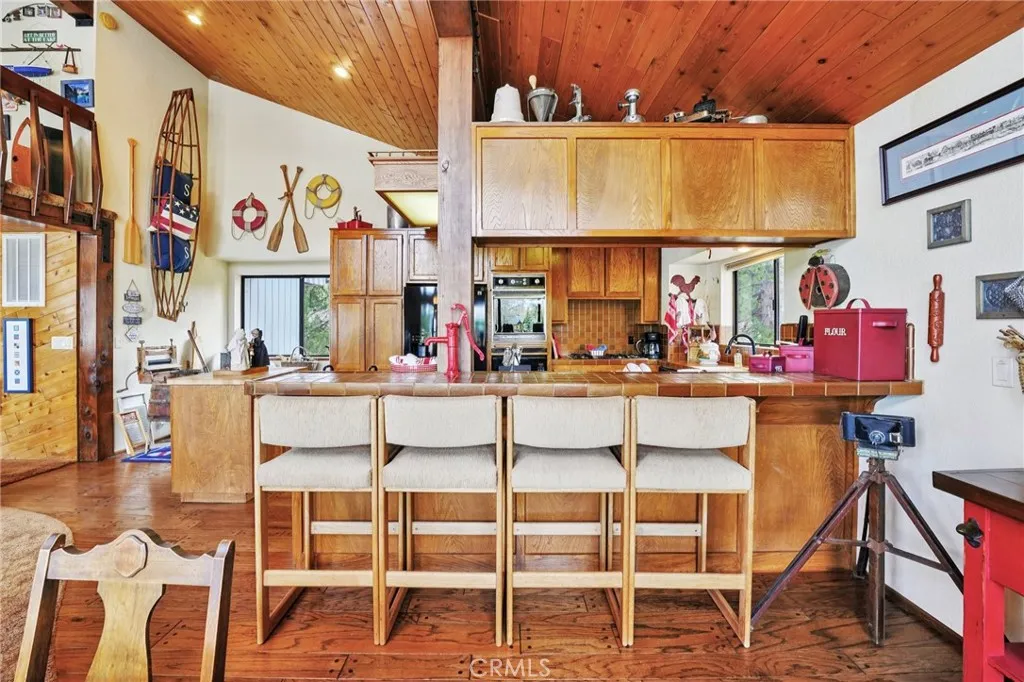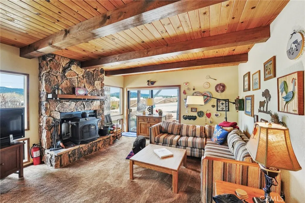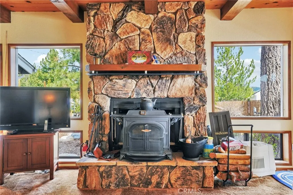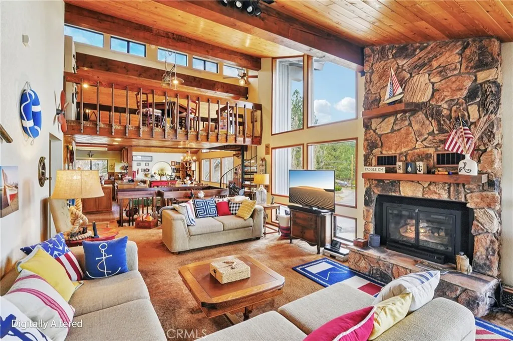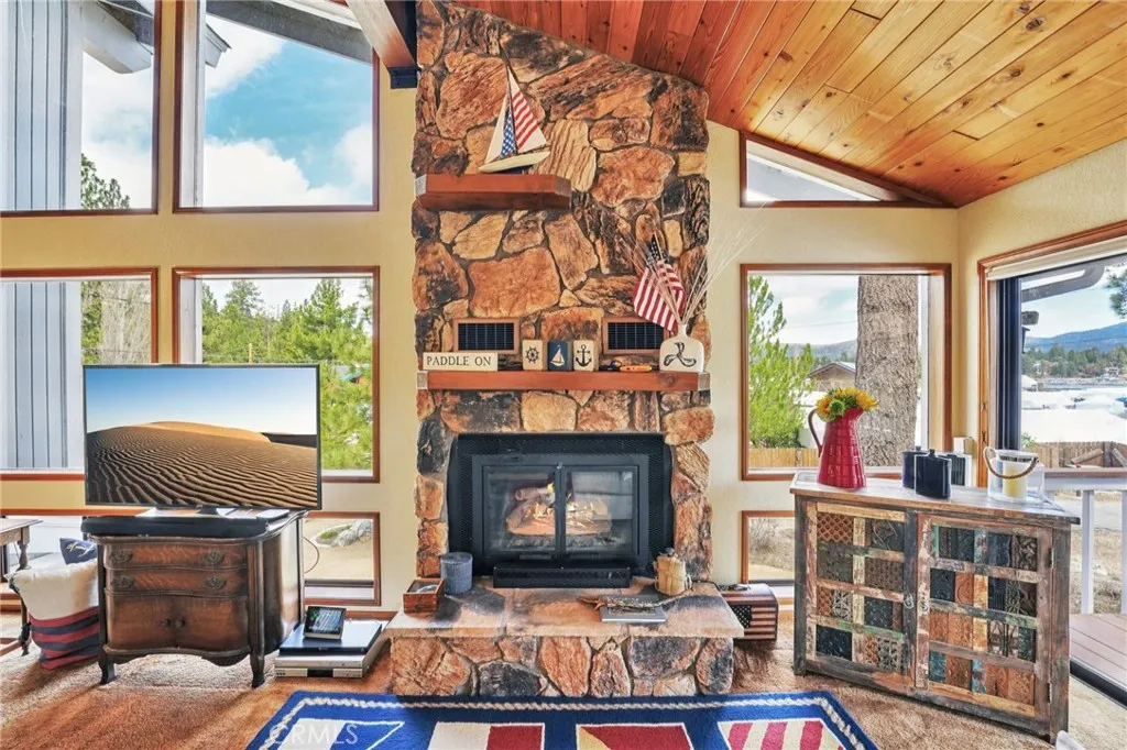 This custom built, cozy Big Bear getaway offers lakeside living at its finest, complete with amazing views of Big Bear Lake and with 2 private boat slips JUST STEPS AWAY at Pleasure Point Marina included in the sale. This home's reverse floor plan features an expansive, open living area with wood beamed vaulted T&G knotty pine ceilings. A wall of lake facing windows showcases spectacular lake, marina and mountain views and while offering plenty of natural light. A floor to ceiling stone fireplace adds to the mountain charm while the living room loft and den with pull-out couch offers versatility as a sitting area, game room, or 4th bedroom. Don't miss the sizable outdoor deck - an amazing place to entertain, BBQ and enjoy the lake and mountain views. Downstairs offers a separate family room with a second stone fireplace with wood burning stove, a convenient place for playing games, reading or just plain relaxing. Centrally located, you're not only right next to Big Bear Lake, but you're only minutes away from The Village, Big Bear Mountain Resorts, Boulder Bay Park and National Forest. Come take a look at all this spectacular property has to offer!