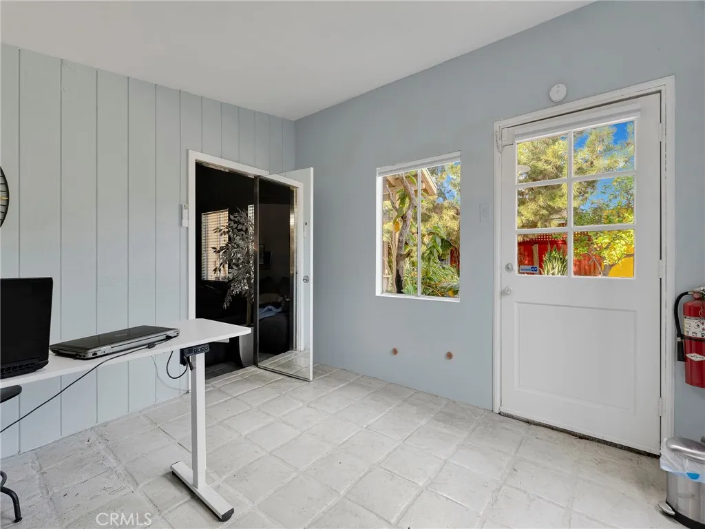 Your Private Oasis in the Heart of North Hollywood Tucked behind a secure gated entry, this thoughtfully reimagined mid-century residence offers a rare blend of style, privacy, and flexible living in one of Los Angeles most dynamic neighborhoods. From the moment you arrive, the Zen-inspired front grounds create a sense of calm with mature fruit trees, colorful landscaping, water features, and drought-conscious design. The expansive front courtyard offers exceptional privacy and usable outdoor space, with potential for future ADU possibilities. Inside, the home is warm and inviting, featuring Saltillo tile floors, floor-to-ceiling windows, and abundant natural light throughout. The spacious living and dining areas flow seamlessly into an upgraded kitchen with stainless steel appliances, generous cabinetry, and functional layout ideal for daily living or entertaining. The home offers three bedrooms and two bathrooms, with the third bedroom currently configured as a home officeperfect for todays work-from-home lifestyle. A separate bonus room adds even more versatility and is currently styled as a bar/music lounge, ideal as a den, studio, guest retreat, or possible private suite configuration. The primary suite is a true retreat, complete with a remodeled ensuite bathroom featuring a large walk-in shower and updated finishes. Step outside to a tranquil backyard designed for indoor-outdoor living. Whether enjoying morning coffee, entertaining guests, practicing yoga, or simply unwinding, this private outdoor sanctuary is surrounded by lush greenery and peaceful seating areas th