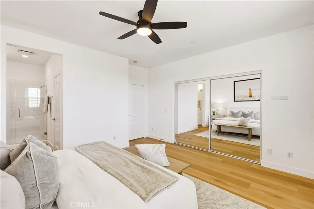 Stylish, turnkey living in the gated community of Fusion in the Hollyglen area of Hawthorne. This beautifully remodeled E floorplan 2-bedroom, 2.5-bath home offers a bright and airy, multi-level layout with thoughtful upgrades throughout, including new flooring, fresh paint, updated countertops, and modern fixtures. The main level features a welcoming living room, with the dining area and kitchen just a few steps upcreating a functional and open flow. The kitchen is outfitted with a new sink and faucet, along with stainless steel appliances. A convenient powder bath with a sleek, modern vanity completes the main living space. Upstairs, youll find two spacious bedrooms, each with its own en-suite bathroom. The spacious primary suite features dual sinks, a walk-in shower, and a large closet with built-in organization. The secondary bedroom includes a bathroom with a shower/tub combination. Convenient upstairs laundry and central A/C add to the homes everyday comfort. A private garage with direct access offers two parking spaces and generous additional storage space beneath the homeperfect for keeping everything organized. Ideally located near the community park, residents also enjoy access to Fusions pool and jacuzziperfect for relaxing and entertaining.