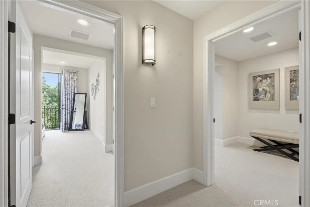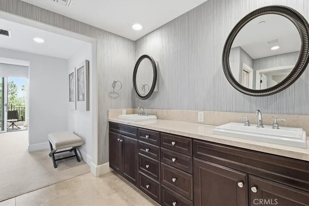Luxury Living at Avanti Calabasas! This impeccably designed top-floor penthouse residence showcases high ceilings, recessed lighting 3 bedrooms, and 4 bathroomsoffering a rare blend of sophistication, privacy, and comfort. Ideally situated at the rear of the community, the home enjoys a peaceful setting away from street noise. A semi-private elevator opens to your own personal foyer, setting the tone for the elevated lifestyle within. The open-concept living and dining areas are filled with natural light and feature elegant French doors that lead to a private balcony. The seamless flow continues into a chefs kitchen equipped with quartz counters, stainless steel appliances, highlighted by a premium Bertazzoni oven/range and an expansive center islandperfect for entertaining. Adjacent to the kitchen, an oversized terrace provides a tranquil setting for morning coffee or evening relaxation, with scenic views of the surrounding mountains and creek below. A thoughtfully designed hallway leads to a stylish powder room with designer touches, while a spacious laundry room offers abundant storage. Secondary rooms all are en-suites. The oversized primary suite is a true retreat, featuring sliding glass doors to a third private balcony, capturing stunning views and abundant natural light. The en-suite bathroom is beautifully appointed with dual vanities, a soaking tub, and a sleek glass-enclosed shower and a very large walk in closetcreating a luxurious escape. Residents of Avanti enjoy exceptional amenities, including multiple layers of security, a private two-story community center