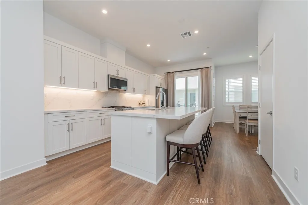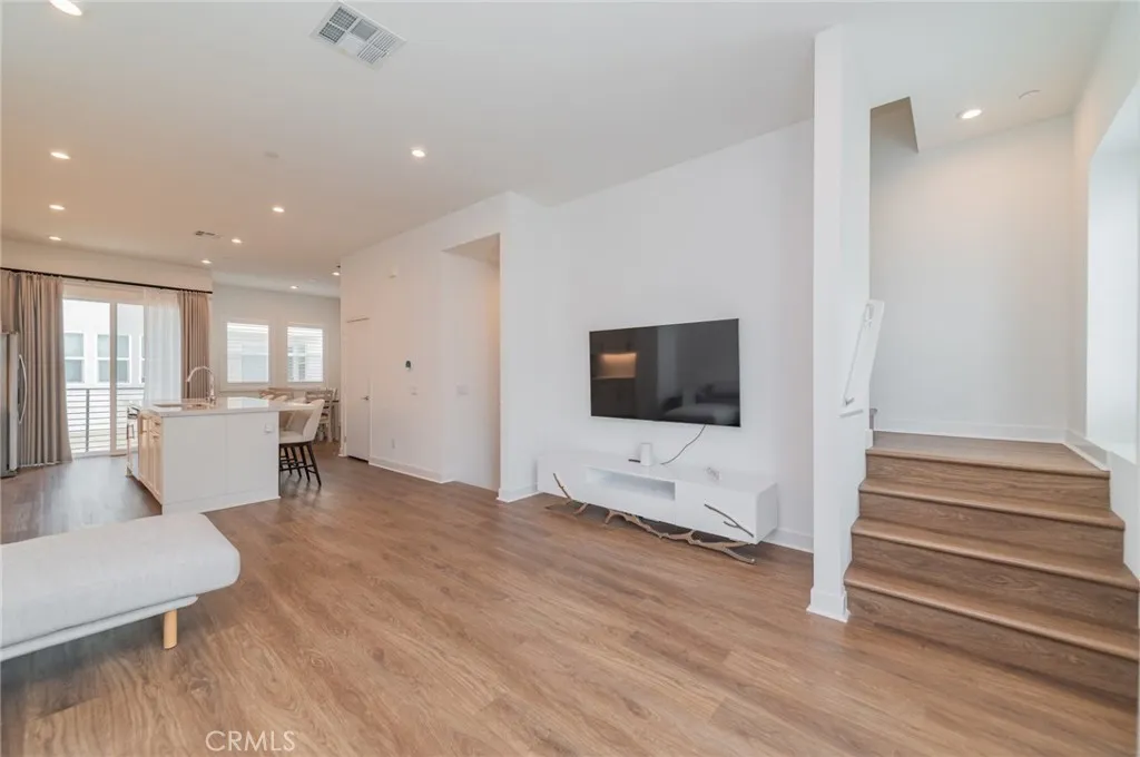 Welcome to this contemporary townhome in the highly desirable gated community of 100 West in Anaheim, built by Toll Brothers. Featuring one of the most versatile floor plans, this home is ideally situated in one of the communitys premier locations. Enjoy resort-style amenitiesincluding a sparkling pool, relaxing spa, landscaped park, and BBQ areasjust steps from your front yard, making it effortless to enjoy outdoor grilling and swimming anytime. The open-concept main level showcases a spacious living and dining area filled with natural light, seamlessly connected to a gourmet kitchen with a large center island, lustrous quartz countertops, stainless steel appliances, and ample cabinetry. Experience indoor-outdoor setting with private balconies view of community greenbelt and a rooftop deck perfect for entertaining offering city views and Disneyland fireworks. A first-floor bedroom with full bath provides flexibility for guests, office, or multigenerational living. Upstairs, the primary suite features a walk-in closet and spa-inspired bathroom with dual vanities and a glass-enclosed shower. Additional highlights include in-unit laundry, central HVAC, energy-efficient features including owned solar panels and a direct-access 2-car garage. Ideally located just minutes from Disneyland, Honda Center, Angel Stadium, top dining and shopping destinations, major medical centers, Chapman University, UCI School of Medicine, and Cal State Fullertonwith convenient access to freeways and transportation hubsthis home offers an unparalleled lifestyle of comfort, convenience, and modern el