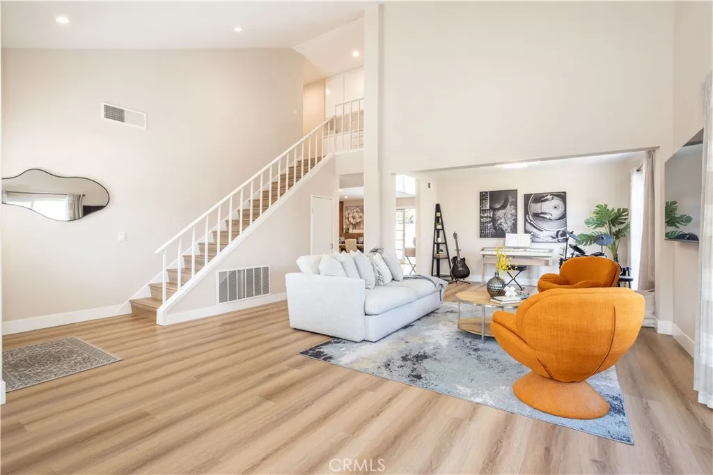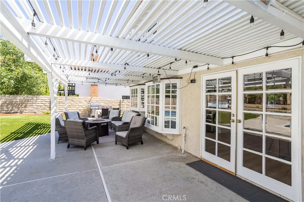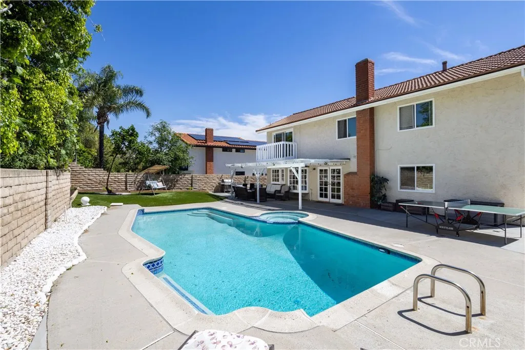 What if the Porter Ranch home youve been waiting for was tucked away on a quiet cul-de-sac in the Porter Valley Country Club neighborhood? If youve been thinking about moving to Porter Ranch and want space, flexibility, and a prime location, this 5 bedroom, 3 bathroom pool home with 2,494 sq ft offers a functional layout designed for everyday living and entertaining. Step inside to soaring ceilings and abundant natural light in the formal living room, creating an open and airy first impression. The adjacent dining room sits just off the living room and connects seamlessly to the rest of the home. The family room features a fireplace and French doors that open directly to the backyard, creating an ideal indoor-outdoor flow. The kitchen offers ample cabinet space, clean finishes, and a charming breakfast nook with a bay window overlooking the yard. The flexible floor plan includes a full bedroom and bathroom downstairsideal for guests, extended family, or a home office. Upstairs, youll find four additional bedrooms, including a spacious primary suite with private balcony access, a walk-in closet, and an updated ensuite bathroom featuring dual vanities and an oversized walk-in shower with glass enclosure. The secondary bedrooms are well-sized and offer versatility for a variety of needs. Additional highlights include an indoor laundry room and an owner-owned solar system for improved energy efficiency. Step outside to a private backyard featuring a pool, multiple seating areas, and a separate grass sectionoffering space to relax, entertain, or play. Located in a highly sought-