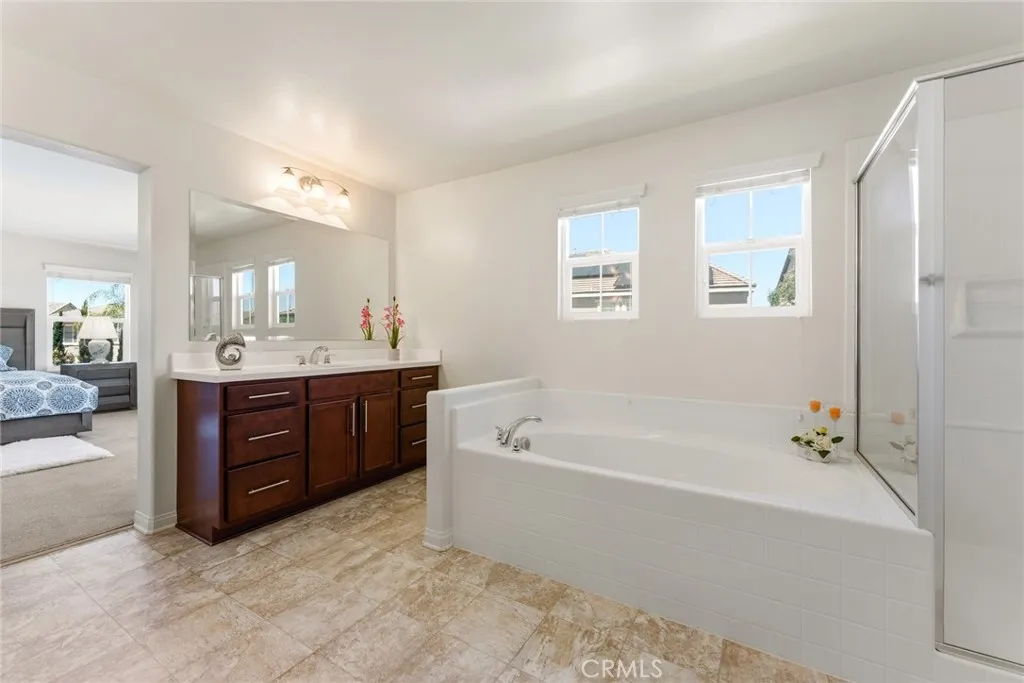 Welcome to this stunning, impeccably maintained modern home in the highly sought-after Park Place community. Situated facing a charming park, the home enjoys a peaceful, open settinglike having your own private front garden. This spacious residence offers 5 bedrooms, 4 bathrooms, and approximately 3,059 square feet of living space. Abundant natural light fills the home, complemented by elegant plantation shutters throughout the main level. The main floor features a bedroom with an adjacent quarter bathroom with a walk-in showerperfect for guests or multi-generational living. The open-concept kitchen flows seamlessly into the great room, creating a warm and inviting space for everyday living and entertaining. A large granite island and expansive countertops provide an ideal gathering area, complemented by ample cabinetry and a walk-in pantry. A bonus room near the garage offers flexibility as a home office, gym, or yoga space. Upstairs, a well-designed layout includes a generous primary suite, a junior suite, two additional bedrooms, and a versatile loft. The primary suite features a spacious bathroom complete with a soaking tub, separate walk-in shower, dual vanities, and generous his-and-hers walk-in closets. A stylish barn door adds both character and functionality. A centrally located junior suite offers enhanced privacy and comfort. Two additional bedrooms are connected by a convenient Jack-and-Jill bathroom. The upstairs laundry room is equipped with a sink and built-in cabinetry for added convenience. The beautifully landscaped backyard showcases fruit trees, lush pla