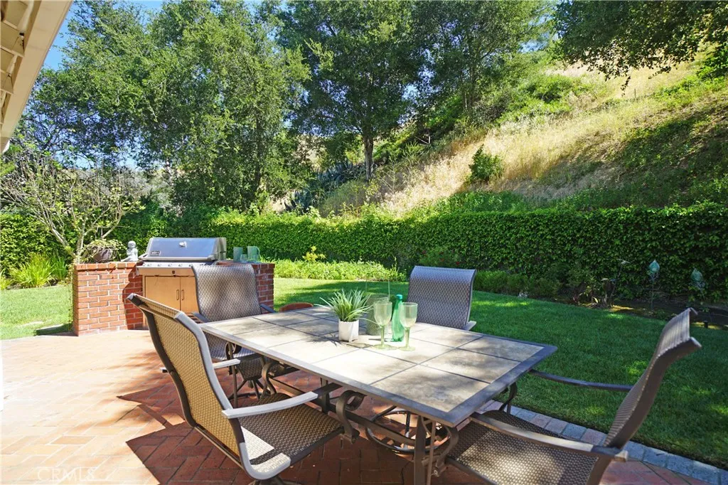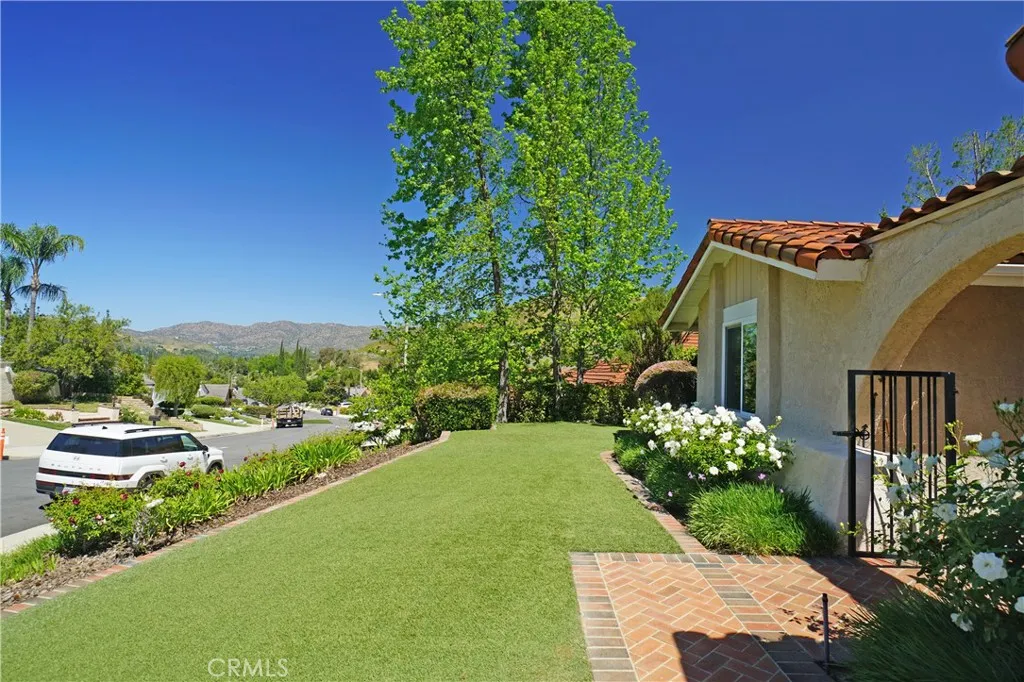 Welcome to this unique opportunity in the highly sought-after Fountainwood community of Agoura Hills. This exceptional single-story home offers over 2,100 square feet on an expanded lot exceeding 40,000 square feeta combination of size, privacy, and potential that is seldom available. Ideally located on Carell Avenue, one of Fountainwoods most desirable streets, the property enjoys wider spacing and no backyard neighbors, creating a level of privacy that is increasingly hard to find. From the moment you arrive, the homes gorgeous curb appeal immediately stands out. Enter through an inviting atrium into a bright, flowing floor plan. Rich cherry wood flooring, custom moldings, baseboards, paneling, and wainscotingcrafted by a local artisanadd warmth and character throughout. The step-down living room is anchored by a striking limestone decorative fireplace, creating a sophisticated yet comfortable focal point. The kitchen features travertine floors, granite countertops, oak cabinetry, stainless steel appliances, and just outside the kitchen, a walk-in bar with counter seatingideal for everyday living and entertaining. The spacious primary suite includes dual closets, including a walk-in, and a marble bath. Secondary bedrooms are well-proportioned, with a hall bath offering a relaxing spa tub. The backyard is where this home truly separates itself. Backing to open space, it offers exceptional privacy and tranquility. The oversized lot provides a rare opportunity to build a view deck on the hillsideunlocking what could become one of the most compelling view properties in Agoura
