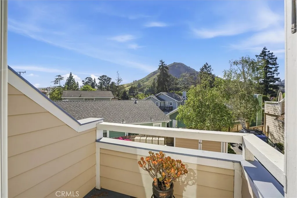 Welcome to this beautifully appointed townhome in the heart of downtown San Luis Obispo, ideally located just one and a half blocks from Mission Plaza, the citys vibrant restaurants, boutique shopping, weekly farmers market, and live music. Thoughtfully designed with high-end designer finishes throughout, this residence offers sweeping views of Cerro San Luis and Bishop Peak mountains. Upon entry, a welcoming foyer with a convenient powder bath leads upstairs to the light-filled great room featuring 17' ceilings, hardwood floors, a cozy fireplace, and an open dining area. The gourmet kitchen is beautifully finished with rich mahogany cabinetry and striking granite countertops, creating an elegant space for both cooking and entertaining. Just off the great room, a charming balcony provides the perfect setting for outdoor seating; an ideal place to relax while taking in the surrounding mountain views. The upper level also includes a stylish built in bar with matching mahogany cabinets, granite countertop, glass shelves and mirror. Also, upstairs is a spacious secondary ensuite bedroom complete with its own private bathroom and balcony. Lots of natural light adorn the home through the windows and 5 skylights. Downstairs, the primary suite offers a private retreat with custom wood-doored closets and a versatile adjoining nook that could serve as a home office, workout area, or additional lounge space. The primary bathroom is thoughtfully upgraded with a walk-in shower, custom cabinetry, and granite countertops. A fenced patio just outside the suite provides a quiet outdoor spac