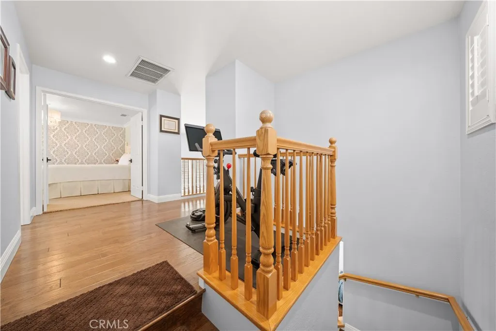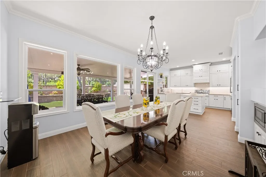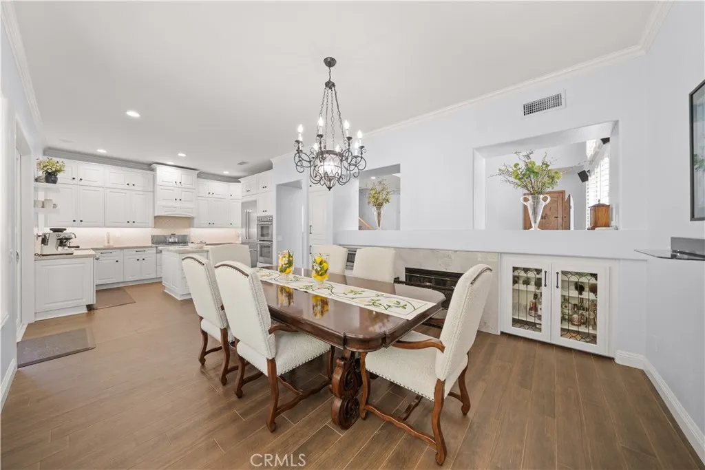 Designer Upgrades! Very Well Maintained! Great Location! Welcome to this beautifully upgraded home in a prime location of North Chino Hills, 4 bedrooms, 3 bathrooms (1 bedroom 1 bathroom downstairs), 2-car garage. Beautiful curb appeal with lush landscaping. Follow the Spanish tile paved path, you are welcomed by the water fountain. The elegant front door accented with wrought-iron scrollwork. Bright, soaring high ceiling living room with fireplace. Fully remodeled gourmet kitchen, showcasing premium custom cabinetry, stunning dolomite stone counter tops, center island, commercial-grade Thermador appliances, including a built-in refrigerator, double-ovens, 6- burner cooktop, kitchen hood, and GE built-in microwave. Formal dining room with custom chandelier, fireplace, and wine cabinet. The main level includes a desirable bedroom and full bathroom, perfect for guests or multi-generational living. Upstairs offers three additional bedrooms and two bathrooms. The spacious primary bedroom has vaulted ceiling, walk-in closet with organizers, and peaceful park views. The luxury primary bathroom with dual sinks, freestanding bathtub and separate shower with frameless glass enclosures. The other two bedrooms walls with elegant wallpapers. Recent years have brought extensive high-end upgrades throughout the home, combining modern luxury with everyday comfort. The notable features include, rich wood flooring runs throughout, enhancing the homes upscale feel, custom two-tone paint, wood shutters, crown moldings, A/C with two zones, whole house water filtration system, wrought iron side