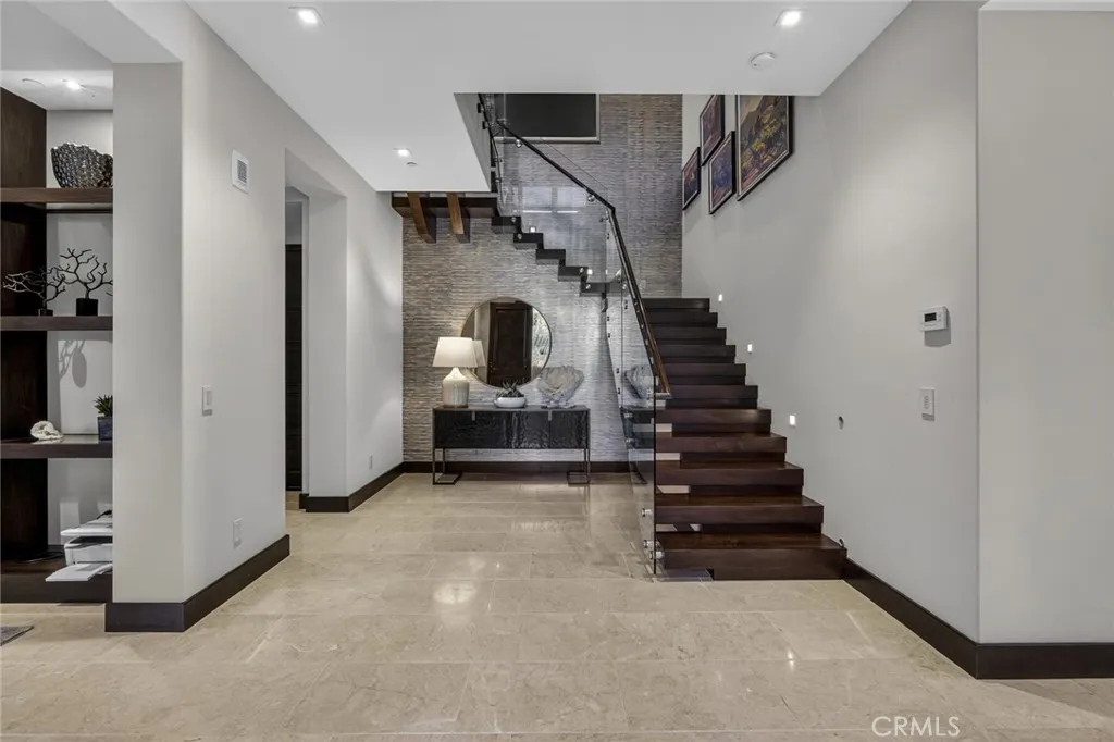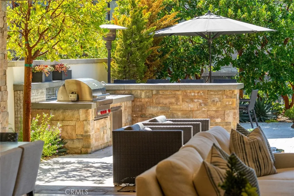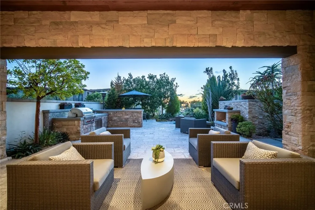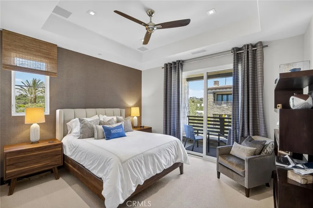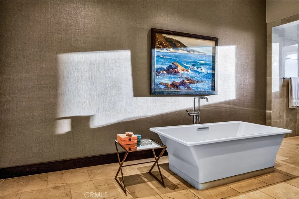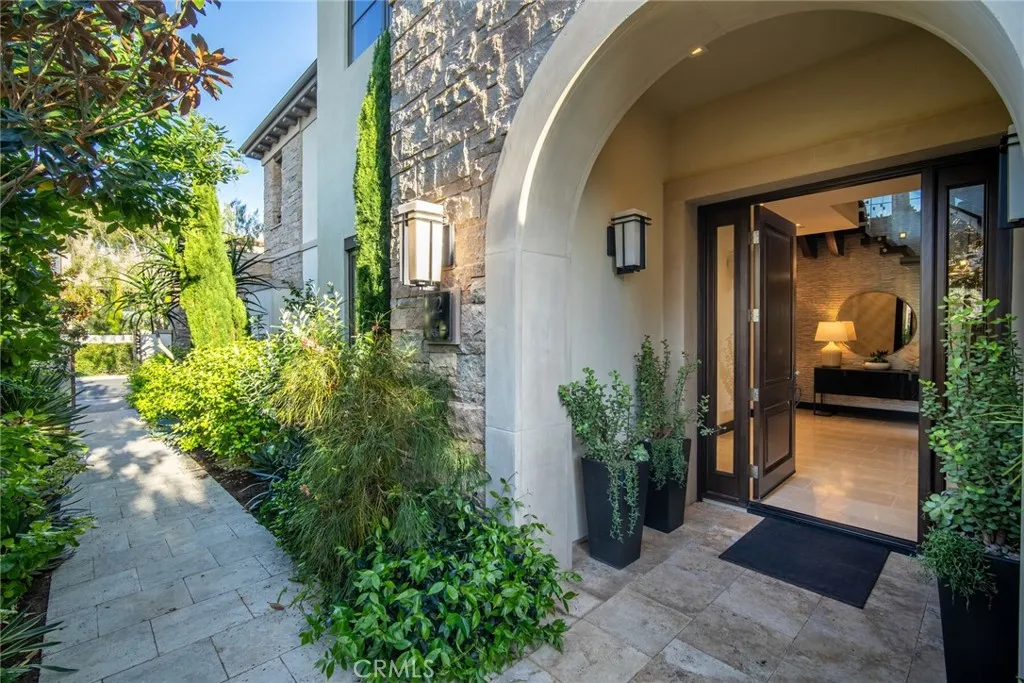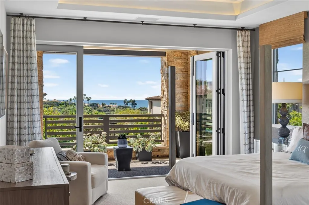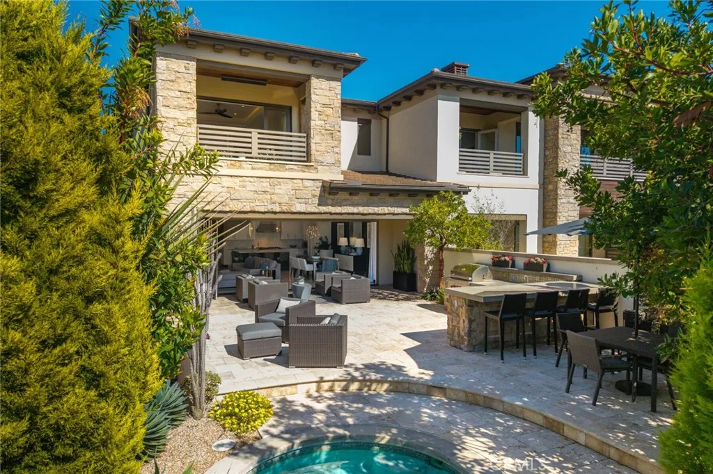 A refined coastal residence at The Grand Monarch, set within the grounds of Waldorf Astorias Monarch Beach Resort, offering the comfort and presence of a high-end home paired with the convenience of resort living. At nearly 3500sqft, a private elevator, attached two-car garage, ocean views and thoughtfully designed interiors, the residence provides both everyday livability and lock-and-leave ease within a secure, gated setting. A private, lush walkway leads to the front door, which opens to curated finishes, statement details, and lighting that creates a warm, sophisticated atmosphere throughout. The main living level opens to a private, low-maintenance yard through expansive sliding doors, creating an indoor-outdoor connection rarely found within this community. The outdoor space offers room for casual dining, entertaining, or quiet relaxation, complemented by a built-in outdoor grilling area, built-in private spa and an outdoor fireplace that enhances the homes sense of resort living and retreat. The kitchen is equipped with a premier Sub-Zero and Wolf appliance suite, generous preparation space, and seamless flow to the dining and living areas. A main-level bedroom, currently utilized as an office, provides flexibility for guests or workspace needs. Upstairs, the primary suite delivers the comfort expected of a five-star retreat, featuring a spacious bath, refined finishes, and a well-proportioned walk-in closet. Additional bedrooms are thoughtfully positioned to provide separation and privacy for family or guests. Life at The Grand Monarch includes direct access to the