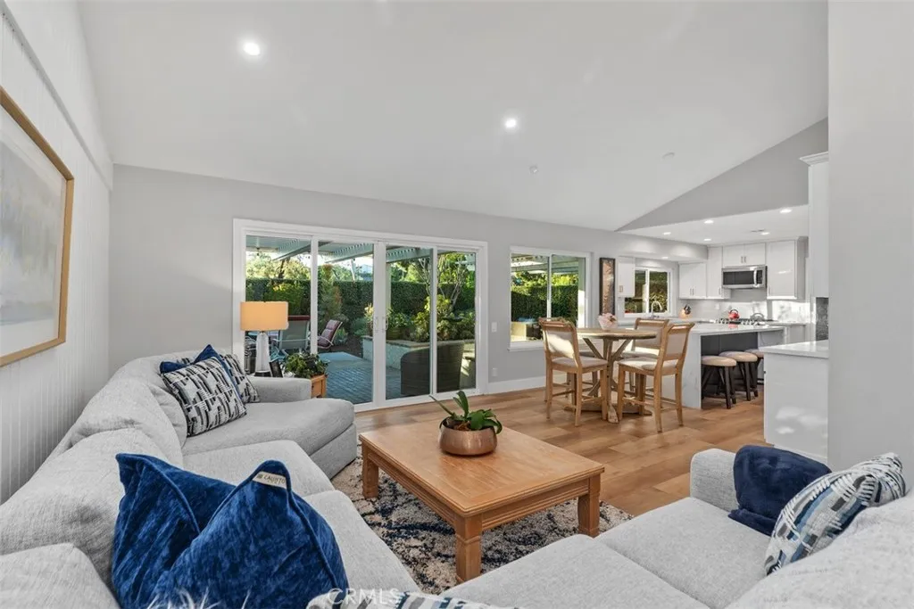 Welcome to this beautifully remodeled, sprawling single-story home, ideally situated on a rare elevated cul-de-sac of just 10 former model homessteps from the scenic Oso Creek Trail, one of Mission Viejos most beloved walking paths. From the moment you arrive, the location speaks for itself. Offered for the first time in 56 years, this exceptional residence showcases true pride of ownership and thoughtful upgrades throughout. The home features 3 bedrooms plus an attached 250 sq ft bonus room with a private entranceperfect for a guest suite, home office, game room, or potential fourth bedroom. Inside, an open and airy floorplan is filled with natural light from new dual-pane windows and sliding doors. The spacious living room boasts vaulted ceilings, recessed lighting, and newly installed luxury vinyl flooring. The fully remodeled kitchen is the heart of the home, featuring quartz countertops, stainless steel appliances, abundant cabinetry, and a large center island with bar seatingideal for both everyday living and entertaining. It flows seamlessly into a generous dining/family room complete with a cozy fireplace and recessed lighting. The primary suite offers peaceful backyard views, direct outdoor access, ample closet space, and a ceiling fan for added comfort. Secondary bedrooms are bright and inviting, with charming front yard views and ceiling fans. Step outside to your own private retreatan expansive backyard designed for relaxation and entertaining. Enjoy a full-width covered patio for shaded gatherings, a cobblestone seating area, and beautifully designed drought-to