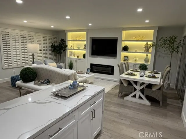 Welcome to this elegantly remodeled townhome in the prestigious senior community of Laguna Woods. This most sought-after "Valencia" single-level home features two bedrooms, two bathrooms, no one above and no one down, a private yard, detached carport, in-unit laundry, and a golf cart parking space. The home was newly updated with durable vinyl flooring throughout and has three independent heating and air conditioning units for zoned comfort, plus smooth ceilings. A spacious living area with a skylight provides abundant natural light. The kitchen offers custom cabinets and quartz countertops, and both bathrooms have been updated with new tile floors and wall tiles. Enjoy a private patio with a beautiful open view. Conveniently located between Gates 5 and 6 with plenty of guest parking. Come enjoy resort-style living with full amenities: two professional golf courses (one 27-hole and one 9-hole par-3 executive course), 24/7 security gates, three fitness centers, ten tennis courts, five pools, an equestrian center, performing arts theater, seven clubhouses, a library, and over 250 social clubs and activities. Shopping, restaurants, churches, and medical facilities are very close by.