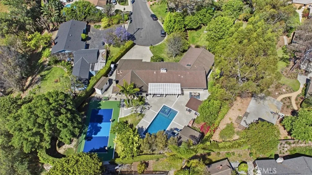 Welcome to summer all year round at your own private resort in the heart of Masongate. Tucked away on a quiet cul-de-sac in Rolling Hills Estates, this Coastal California ranch estate sits on an expansive, fully usable 26,000 sq ft lotoffering the perfect blend of privacy, space, and effortless indoor-outdoor living. This 4-bedroom, 4-bath home is designed to impress, with a floor plan that opens to a true entertainers backyard. Enjoy a newly updated pool and spa with Bluetooth-controlled lighting and heating, an electronic pool cover, and a separate pool house. The covered outdoor BBQ kitchen and gas fireplace create the ultimate setting for unforgettable California evenings. For those who love to stay active, the property features a lighted pickleball/sports court and is zoned for horses with direct access to scenic riding trails leading to Ernie Howlett Park. Inside, the chefs kitchen flows into the great room and is equipped with Sub-Zero refrigeration, a Wolf range with griddle, three ovens, two dishwashers, and a warming drawerideal for hosting at any scale. Additional highlights include dual-zone HVAC and a whole-house water filtration system. The sun-filled grounds are lined with mature fruit trees and offer ample space for an ADU, expansion, or future vision. A rare opportunity to own a private compound in one of the South Bays most sought-after neighborhoods.