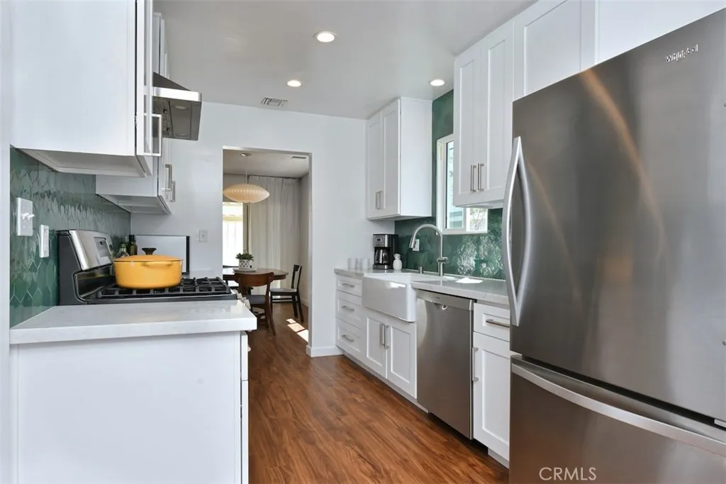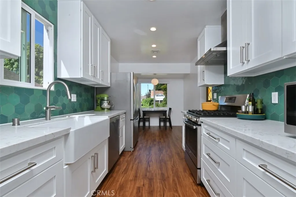 Located on a charming tree-lined street, this inviting home offers the perfect blend of modern amenities and classic appeal. Offered for the first time, this home has been lovingly owned by the same family for generations and has never before been on the market. The spacious living room features an expansive picture window framing serene backyard views, an ideal setting to relax and unwind. The living area flows seamlessly into the dining space, where sliding glass doors fill the home with abundant natural light and provide easy indoor-outdoor access. Designed to impress, the chic and sophisticated gourmet kitchen is a chefs delight, showcasing quartz countertops, Zellige tile backsplash, farmhouse sink, stainless steel appliances, and a convenient eating area, all beautifully accented by luxury vinyl flooring throughout. The primary bedroom is conveniently situated and features a large closet, window shutters, and an attached bathroom with a walk-in shower. Three additional bedrooms complete the home, served by a classic full bathroom, while the front bedroom includes its own private half bath, ideal for guests or a home office. Perfect for enjoying sunny California weather, the expansive private backyard offers endless opportunities for outdoor living and entertaining. Ideally located within the highly regarded Kester Elementary School district and close to local freeways, shopping, restaurants, and recreation, this home is nestled in a truly fantastic neighborhood. Dont miss this wonderful opportunity to call 5822 Norwich Ave. home!