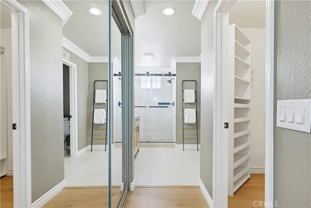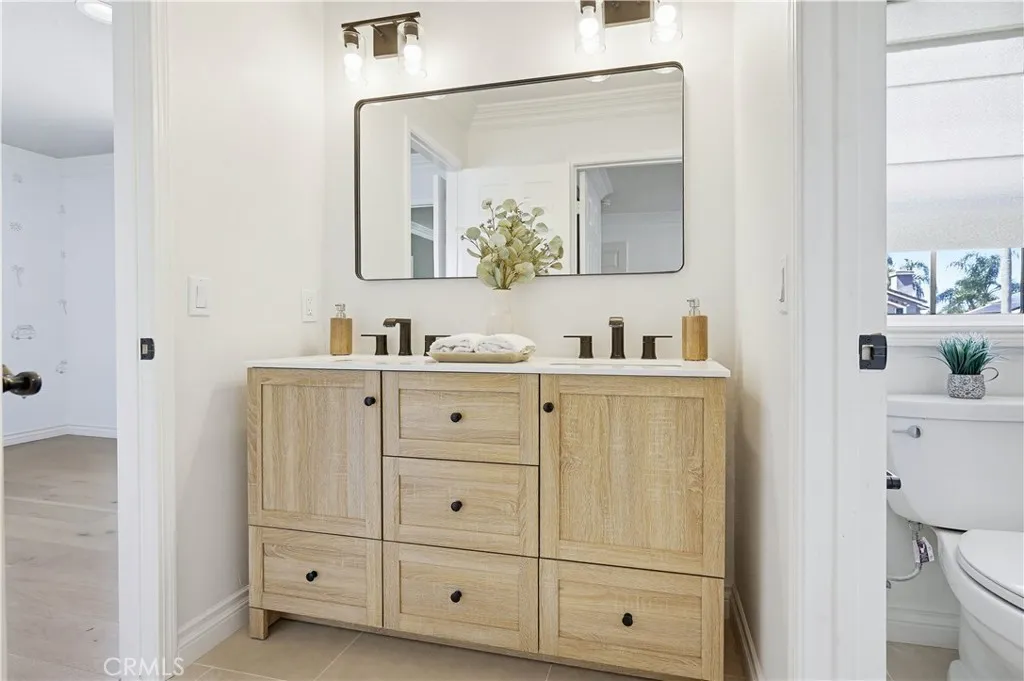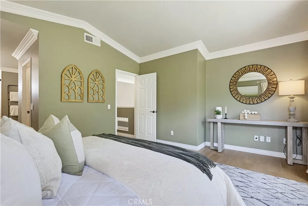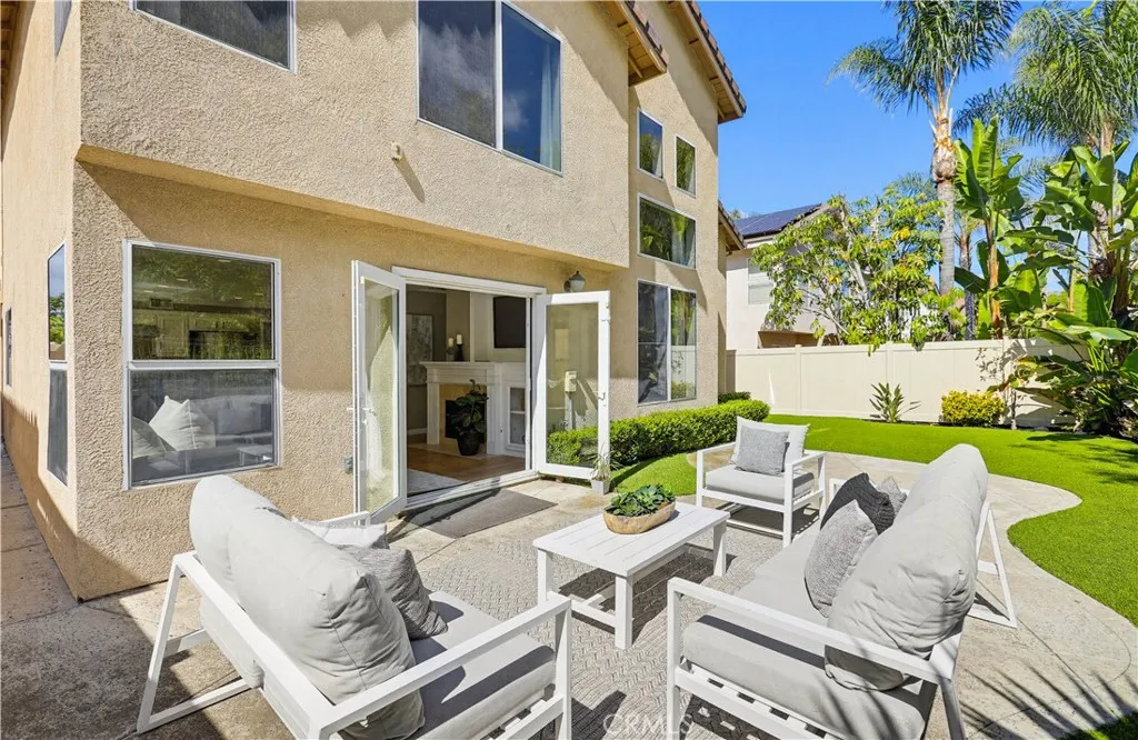 Prepare to fall in love with this spacious and beautifully updated California Crest home, a perfect example of pride in ownership! Ideally located on a family friendly cul-de-sac street in a highly desirable Pacific Hills neighborhood, this home pushes all the right buttons! Pass through the double door entry and soak in the soaring two story ceilings with an abundance of natural light streaming through the floor to ceiling windows. Extra wide crown molding, gorgeous wide plank wood floors, custom light fixtures, and a stunning centerpiece staircase set the stage for an impressive living environment. The formal living area is open to the formal dining room which features built-in cabinetry and wine rack, providing an elegant setting for dining and entertaining. Pass through to the sunny Kitchen which is open to the family room with built-in media center, cozy fireplace, and French doors opening to the backyard patio, a perfect indoor-outdoor living space. The beautifully updated and spacious kitchen features Quartz countertops and a stylish backsplash, timeless white cabinetry, Stainless-Steel appliances, and a prized center prep island with breakfast bar. The main level includes a stunning full bathroom with walk-in shower and a desirable bonus room perfect for a 4th bedroom or an executive home office with built-in bookcases and workstation. Travel up the light filled staircase to the large primary bedroom suite featuring vaulted ceilings, crown molding, two closets including a walk-in closet with built-in organizers, and a newly remodeled primary bath with custom Quartz
