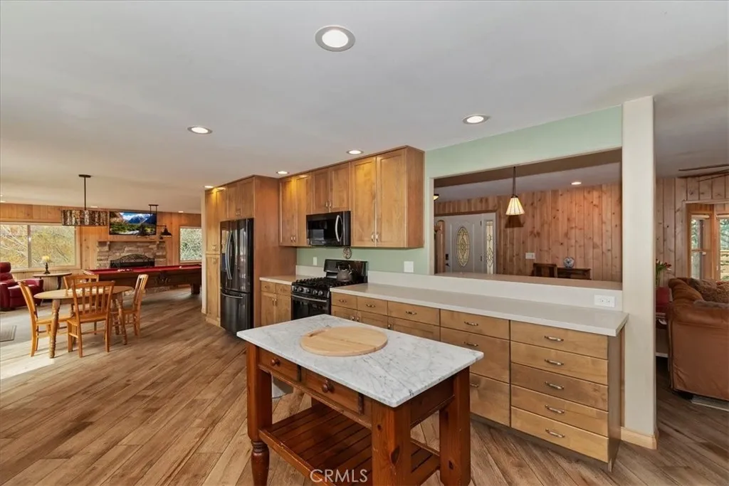 Welcome to lakefront living at its finest in the highly sought-after Eagle Point. Perfectly positioned on a generous 14,168 sq ft lot, this beautifully updated 4-bedroom, 3-bathroom home offers 2,755 sq ft of thoughtfully designed space and an unbeatable front-row seat to Big Bear Lake. Step inside to an open-concept floor plan designed for both comfort and entertaining, featuring a spacious living area anchored by one of three fireplaces, creating the perfect mountain ambiance year-round. The expansive kitchen is ideal for hosting, complete with alder cabinetry, ample counter space, and seamless flow into the main living and dining areas. This home was made for gathering and unwinding, with a separate game room featuring a pool table and its own fireplaceperfect for aprs-ski evenings or summer nights after a day on the lake. The primary suite is a true retreat, offering its own fireplace, added soundproof insulation for privacy, and a cozy, elevated feel. Thoughtful upgrades are found throughout, including cedar-lined closets, porcelain flooring downstairs, waterproof vinyl flooring upstairs, and a striking oak staircase that ties the home together with warmth and style. Step outside onto the back deck and take in what may be some of the most breathtaking sunset views in Big Bear. With lakefront access and dock rights, this property offers the ultimate waterfront lifestyle. Enjoy front-row seats to the 4th of July fireworks over the lake and the magical torchlight parade on New Years Everight from your own backyard. Complete with an attached 2-car garage and located in one