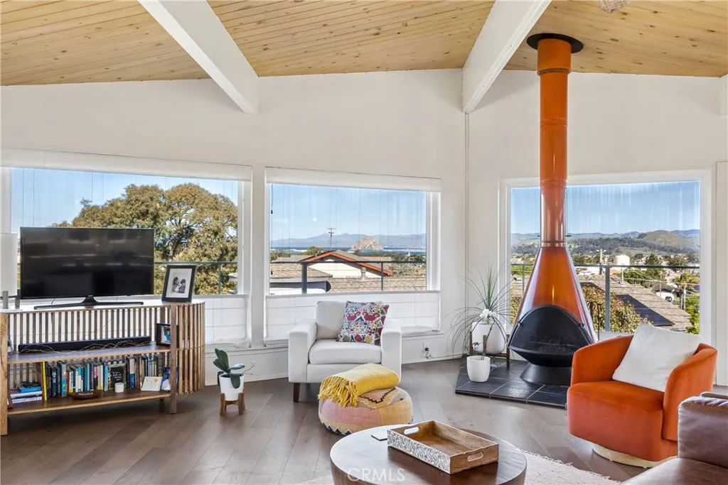 Wake up to breathtaking views of Morro Rock and the Pacific Ocean in this beautifully updated custom home, complete with a charming 170 sq ft detached casita. This 3-bedroom, 2-bath residence blends comfort and style with an open-concept layout, soaring open-beam ceilings, and rich Mohawk engineered wood flooring throughout. Expansive windows flood the home with natural light while perfectly framing the stunning coastal scenery, and a vintage wood-burning stove adds a warm, mid-century modern touch. Each bedroom offers direct access to the view deck, including the spacious primary suitecreating a seamless indoor-outdoor living experience. Designed for both relaxation and entertaining, the property features multiple decks and inviting seating areas, and a generous patio adjoining the casitaideal for guests, a home office, or creative studio. Set on an expansive half-acre lot, the grounds offer endless opportunities for gardening and outdoor enjoyment, complete with a dedicated garden shed. An oversized two-car garage provides ample storage and convenience. Located just across from open space with scenic hiking, biking, and equestrian trails, and only minutes from the ocean, this exceptional property delivers the perfect blend of tranquility, recreation, and coastal living.