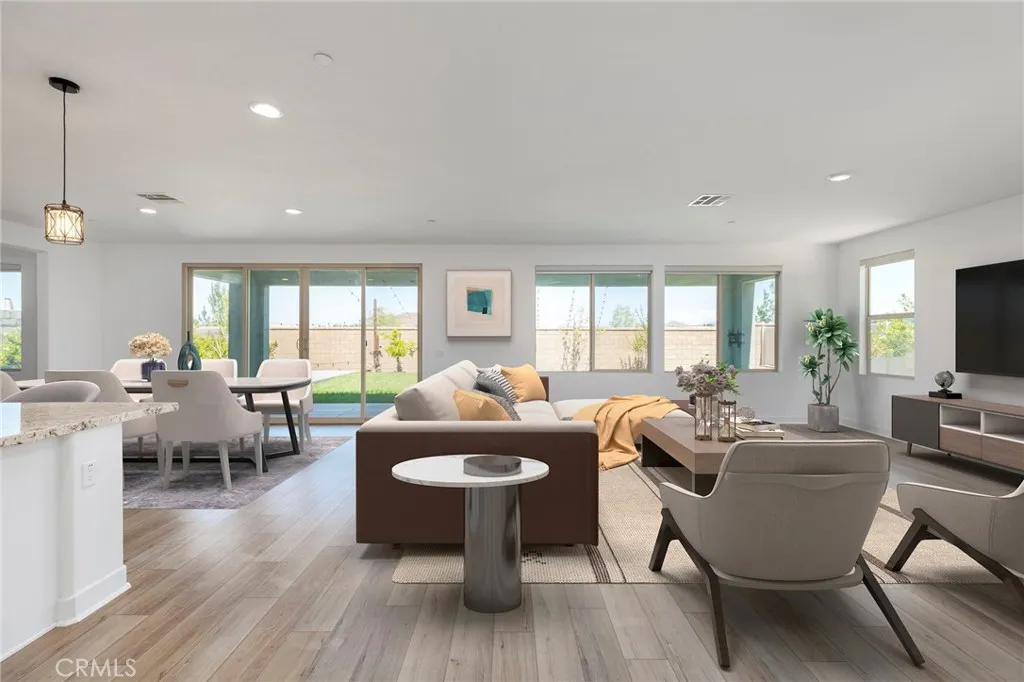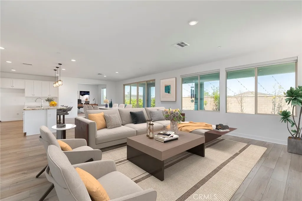Built in 2021, this stunning Tri Pointe Home sits on a spacious 8,712 square foot cul-de-sac lot with no rear neighbors and beautiful views! The popular Magnolia floor plan features five bedrooms, including a convenient guest suite on the main level, three bathrooms PLUS a flex room adjacent to the kitchen PLUS an upstairs loft. Upon entering through the charming covered porch, you are greeted by a grand two-story entryway with an open rail staircase. The main level continues into an expansive great room with Luxury Vinyl Plank flooring and a 12-foot center-open sliding glass door that seamlessly blends indoor and outdoor living. The gourmet kitchen is a chef's dream, boasting white shaker-style cabinetry, gorgeous custom granite and quartz countertops, and a large island with seating for three. Stainless steel appliances, an undermount single-basin sink, and elegant pendant lighting complete the space. Tucked just off the kitchen is a versatile flex room perfect for a home office or playroom. The second level offers a spacious loft situated near the primary bedroom suite, which overlooks breathtaking mountain views. The primary en suite bathroom provides a spa-like experience with two separate vanities, custom tile flooring, a walk-in shower with a seat, and a generous walk-in closet. Three additional bedrooms, a third full bathroom, and a dedicated laundry room with a sink and storage shelves are located down the hall. High-tech upgrades are found throughout the home including motorized smart blinds, a tankless hot water heater, LED lighting, Whole House Fan and fully OWN
