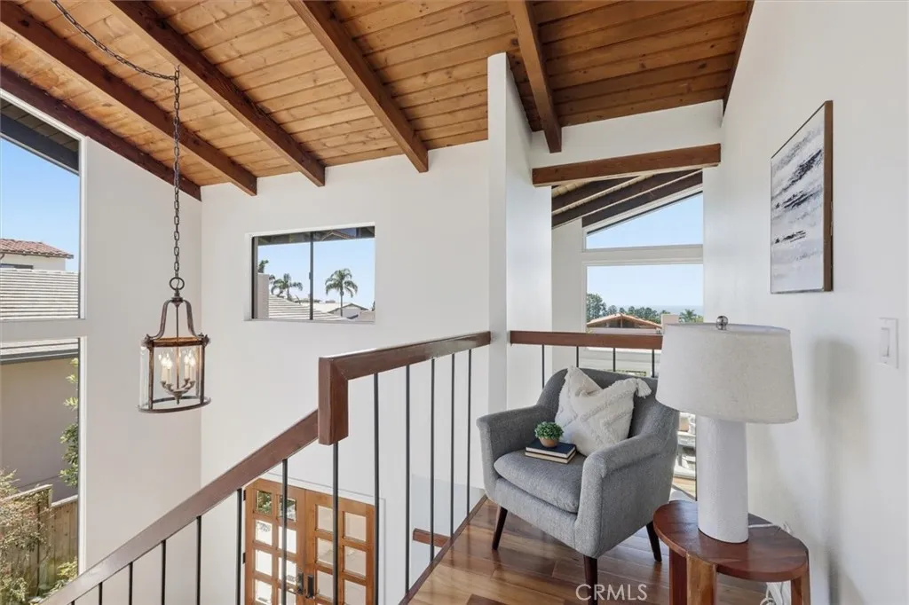 Stunning Mid-Century Modern home in coveted Lower Lunada Bay, offering beautiful ocean views and a prime west-facing orientation. This 4-bedroom, 3-bath residence effortlessly blends timeless architecture with warm, comfortable coastal living. The formal living room welcomes you with soaring vaulted ceilings, a cozy fireplace, and sunlit ocean vistas that create an inviting space to relax or entertain. Rich Brazilian tiger wood flooring adds warmth and character throughout the living areas and upstairs, enhancing the homes natural elegance. Upstairs, youll find three bedrooms and two baths, including a spacious primary suite with vaulted ceilings, a charming fireplace nook, walk-in closet, and a spa-inspired bathroom designed for everyday luxury. Downstairs features a private 1-bedroom, 1-bath retreatperfect for guests, a home office, or extended living. Beautiful slate tile flooring spans the lower level, offering both durability and a sophisticated, grounded feel. The open-concept kitchen is both stylish and functional, anchored by a generous quartz breakfast counter that flows seamlessly into the family room and opens to the backyard. Designed for effortless indoor-outdoor living, the resort-style yard is a true highlightcomplete with a sparkling pool, jacuzzi, and an abundance of mature fruit trees, including two prolific avocado trees, lime, lemon, persimmon, and orange. Ideally located in one of Palos Verdes Estates most sought-after neighborhoods, this special home is just moments from the scenic bluffs, top-rated elementary school, and the charming shops and dining