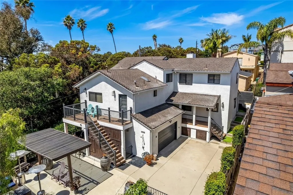 Just blocks from Pismo State Beach, this one-of-a-kind Pismo Beach property offers a rare opportunity for multi-generational living, a coastal retreat, or a compelling investment. Designed with comfort and flexibility in mind, the main home features three spacious bedrooms and two beautifully updated bathrooms. A thoughtfully appointed, separate guest studio with its own bathroom provides ideal space for extended family, guests, or potential rental income. A fenced outdoor entertaining area with an outdoor kitchen and bar seating creates an inviting setting to gather and enjoy the coastal climate. The main level welcomes you with a warm and inviting family room complete with a wet bar, along with a bedroom and bathroom featuring a tiled shower, ideal for guests. Upstairs, natural light fills the primary living space, centered around a remodeled kitchen with quartz countertops, generous island seating, beverage fridge, a stainless steel sink, and a breakfast nook. The adjacent living room offers a comfortable place to relax, while two additional bedrooms and a full bathroom with a tub/shower complete the upper level. With its versatile layout, modern updates, and close proximity to the beach, restaurants, and shopping, this property captures the ease and appeal of coastal living.
