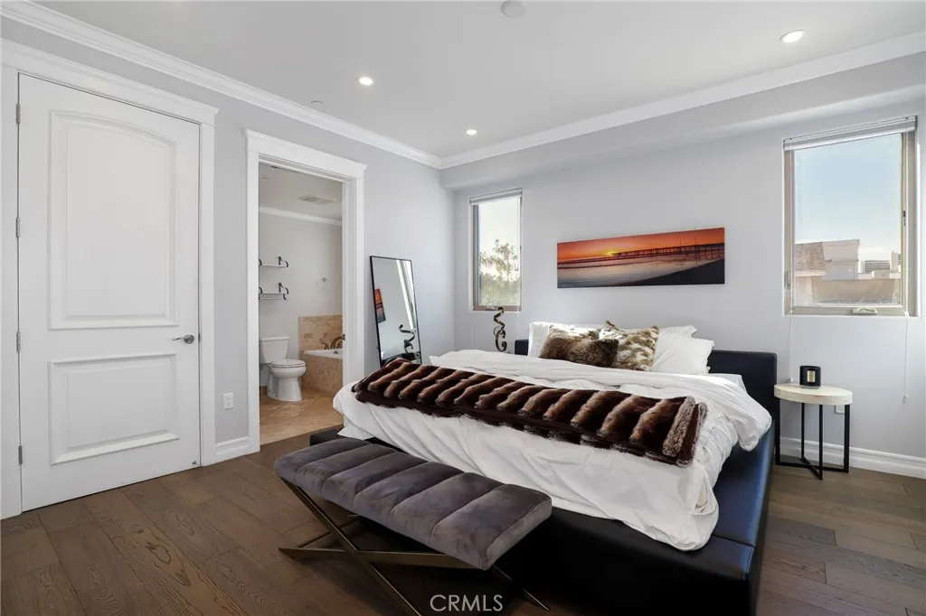 Experience elevated living in this stunning 2016-built luxury condo in the heart of Westwood. This front-facing 2-bedroom, 2.5-bath residence spans approximately 1,350 sq ft and offers a rare level of privacy and sophistication, highlighted by a private elevator that opens directly into the unitan exclusive feature typically reserved for penthouses. The expansive living room provides an open-concept layout filled with natural light, rich hardwood floors, recessed lighting, and elegant crown molding throughout. The area also features a decorative fireplace and flows seamlessly to a balcony through double French doors, offering peaceful palm tree views. The kitchen is designed to impress, showcasing a premium Bertazzoni stainless steel appliance oven and hood, marble countertops, and a large center island with ample prep spaceperfect for entertaining. The spacious primary suite is a true retreat, offering three closets and a luxurious ensuite bathroom complete with a standalone soaking tub, glass-enclosed shower, granite vanity, and travertine finishes. The second bedroom also features its own ensuite bath, along with crown molding and recessed lighting. Additional highlights include in-unit laundry, a Google Nest Thermostat, and a new tankless water heater. Enjoy the convenience of no common walls, an in-unit trash chute, two parking spaces, and two storage unitsincluding an oversized private storage room. Located just moments from UCLA, Westwood Village, Beverly Hills, Century City, Brentwood, and Santa Monicathis home offers the perfect blend of luxury, privacy, and unbeat