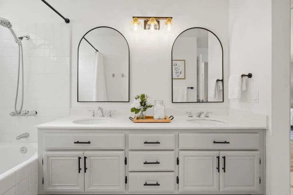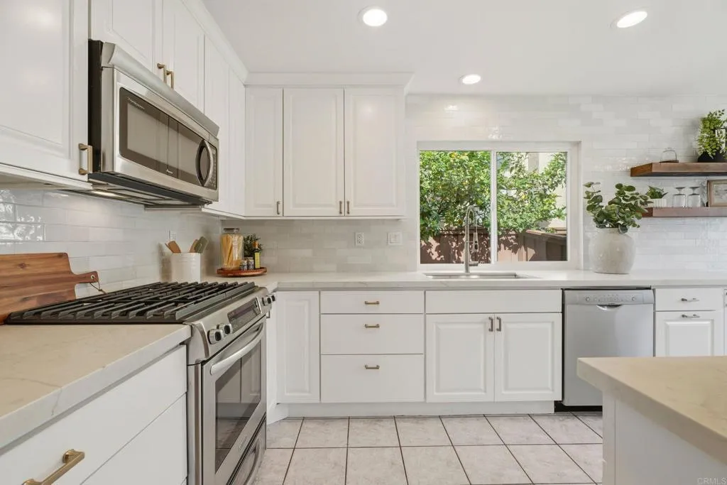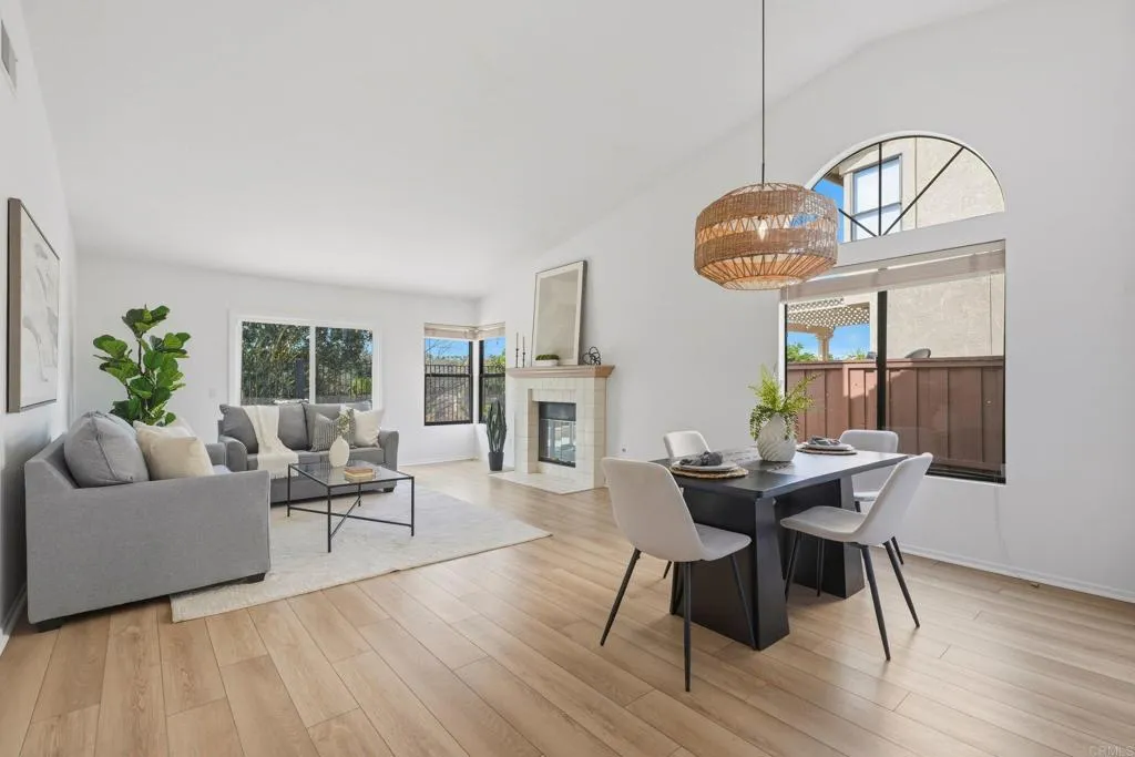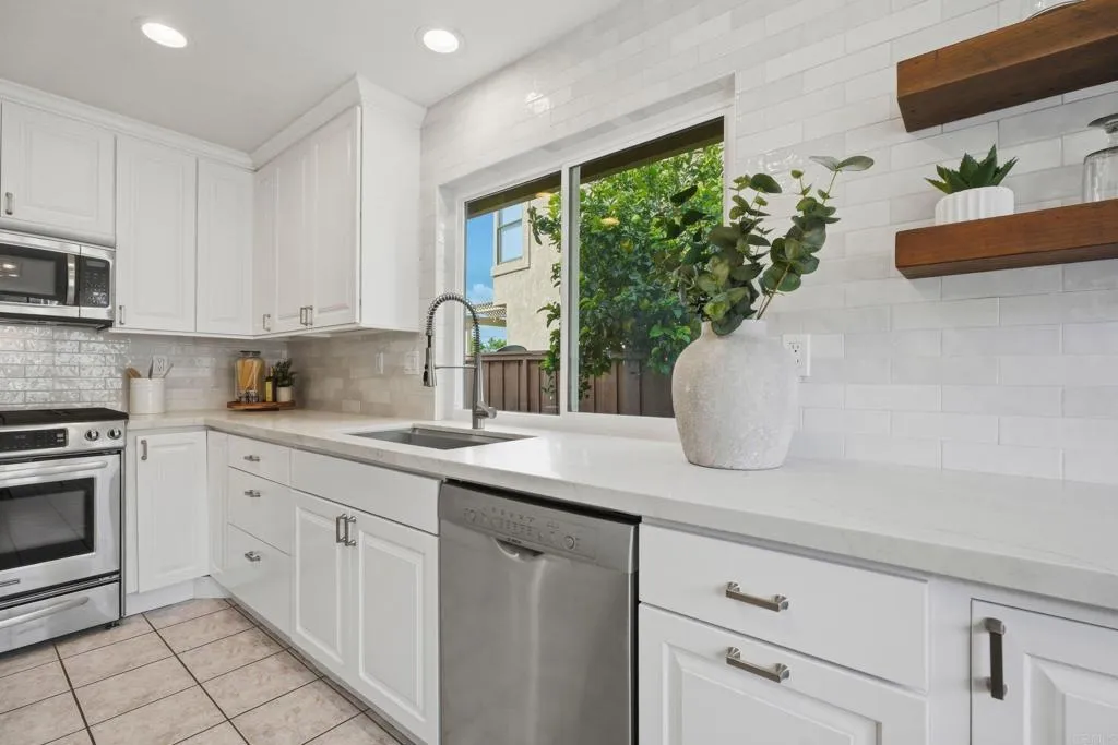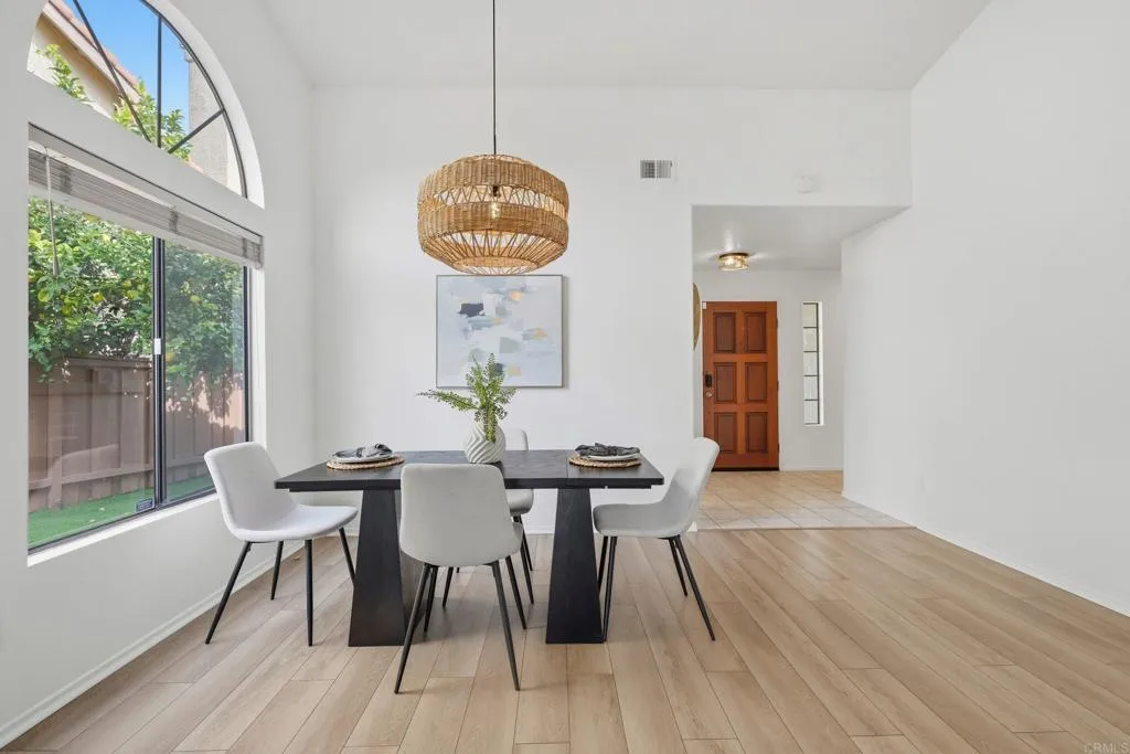 Discover a rare opportunity in the highly desirable community of Sabre Springs with this beautifully appointed single-story home. Perfectly situated just minutes from the freeway and close to shopping, dining, and scenic hiking trails, this residence offers the quintessential San Diego lifestyle. Inside, the home shines with modern elegance, featuring a beautiful white & gold themed kitchen with stainless appliances and a breakfast nook, while contemporary LVP and tile flooring provide a carpet-less environment. Additional updates include: dual-pane vinyl sliding doors, LED lighting, and a fashionable boho light fixture to illuminate your dining table. Enjoy the generously sized low maintenance front yard or relax in the private backyard sanctuary complete with ample shade and drought-friendly turf. This home is priced to sell and checks too many boxes to delay, hurry and see it soon!