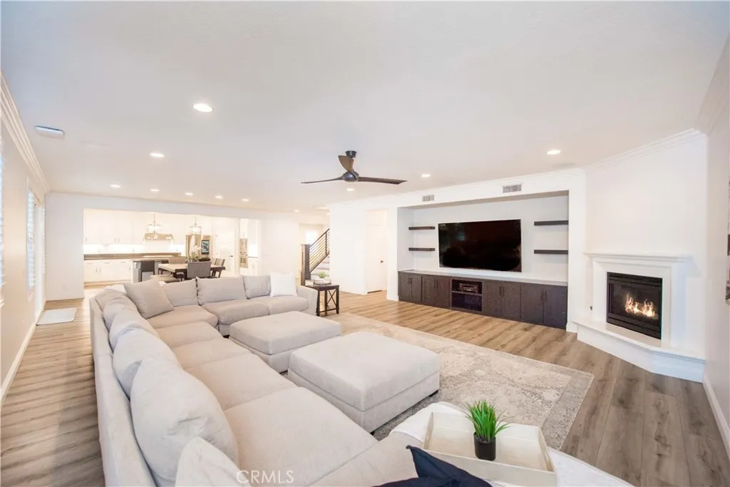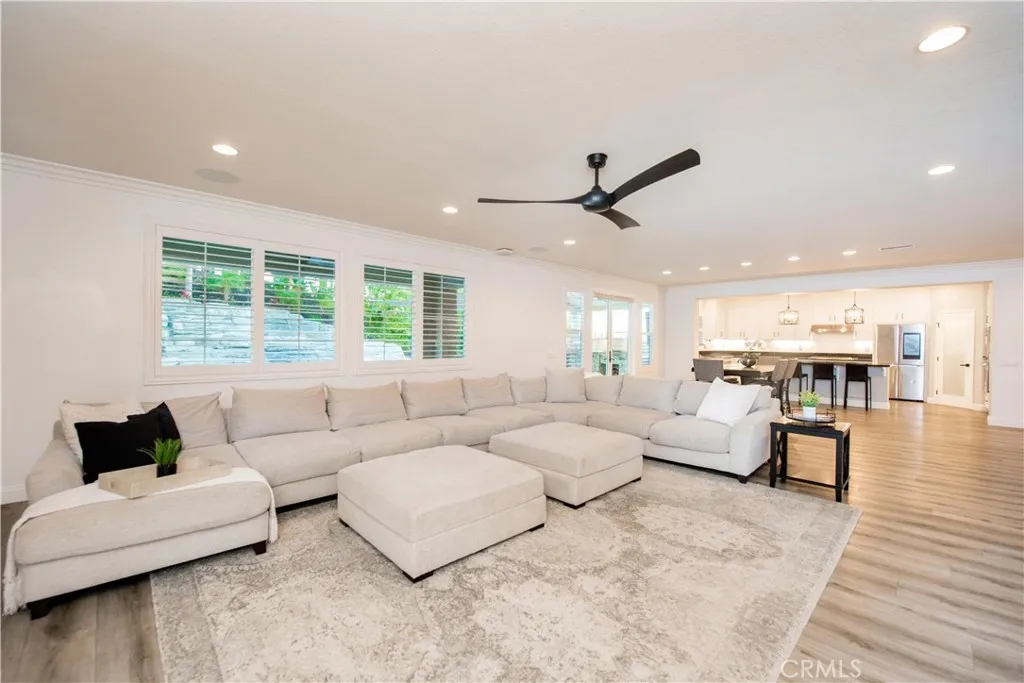 Welcome to a truly exceptional entertainers dream nestled in one of Coronas most desirable gated neighborhoods, The Retreat. This expansive 6-bedroom, 6-bathroom residence offers approximately 4,248 square feet of thoughtfully designed living space, set on an impressive 12,197 square foot lot. Step inside to discover wide open living areas filled with natural light, perfect for both everyday living and hosting unforgettable gatherings. The home features two bedrooms on the main floor, including a private guest suite complete with its own bathroom and convenient kitchenetteideal for multi-generational living or extended stays. The heart of the home is the beautifully upgraded kitchen, showcasing new cabinetry and premium stainless steel Viking appliances, seamlessly flowing into the spacious great room. Here, youll find a custom-built entertainment center and integrated surround sound system, creating the ultimate space for relaxing or entertaining. Upstairs, the primary suite offers a luxurious retreat with its own dedicated HVAC zone for personalized comfort. Additional highlights include a mini-split AC unit for enhanced efficiency and a versatile downstairs front room with a custom barn doorperfect as a private office or optional guest space. Step outside and experience resort-style living at its finest. The backyard is a true showstopper, featuring a sparkling pool and spa with a slide, tunnel, waterfalls, commercial quality misting system and a bubbling volcano featureall WiFi-controlled through the iAqualink app. Enjoy evenings around the elevated fire pit with built-