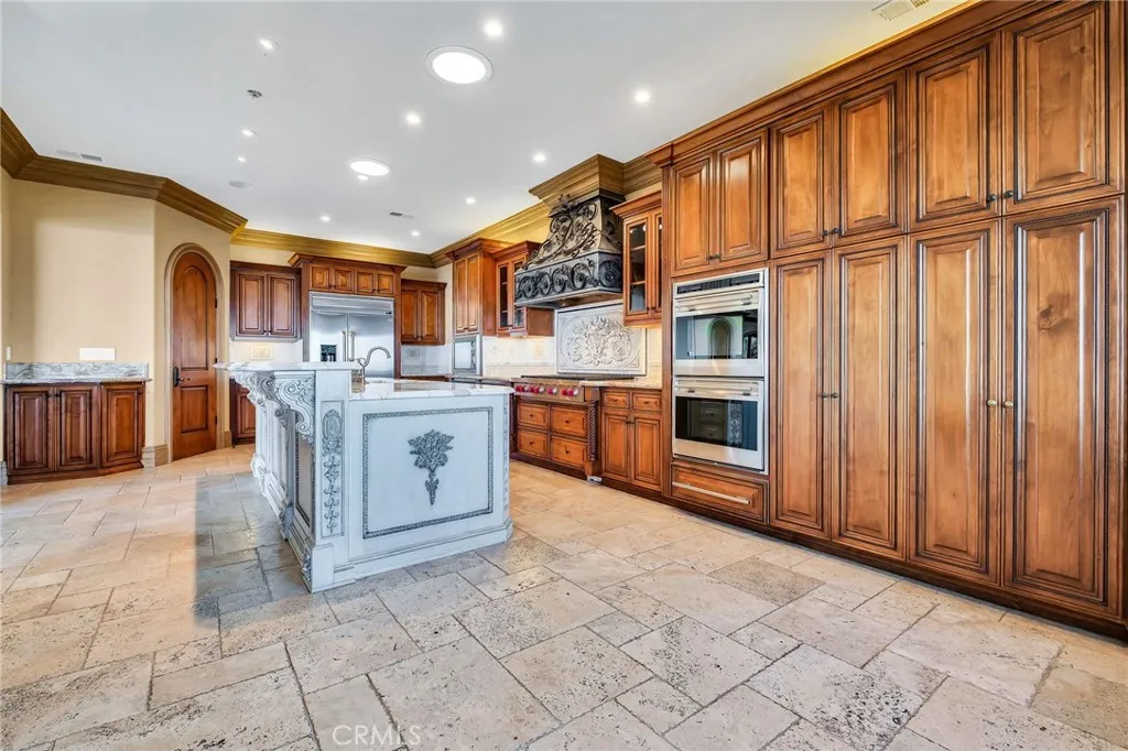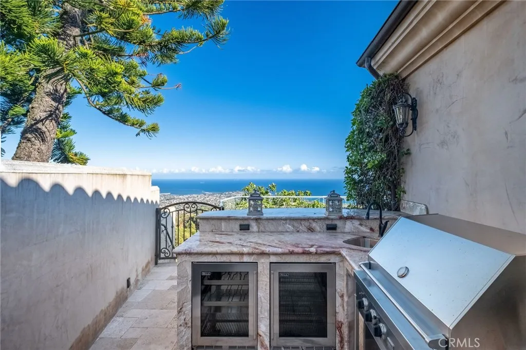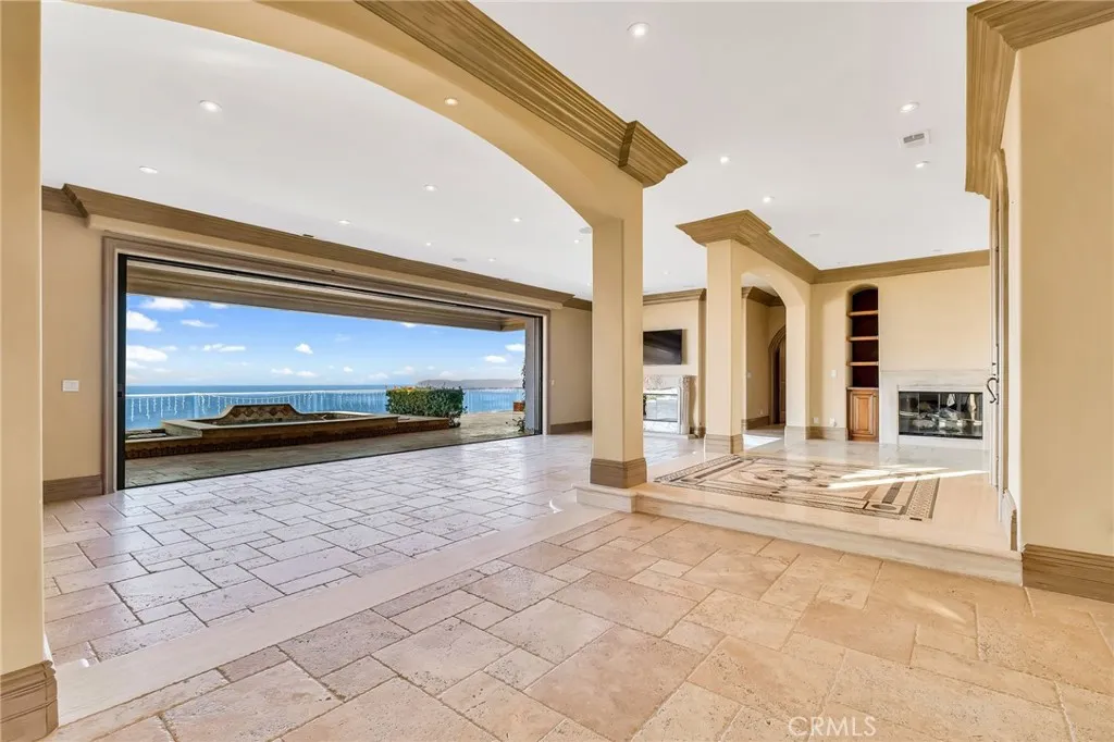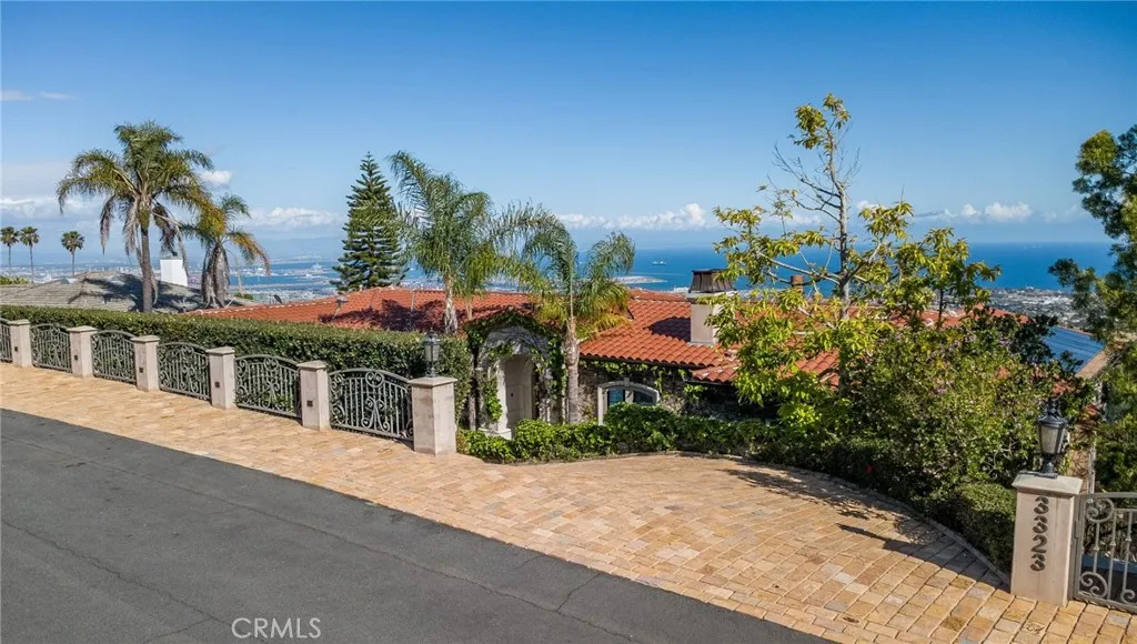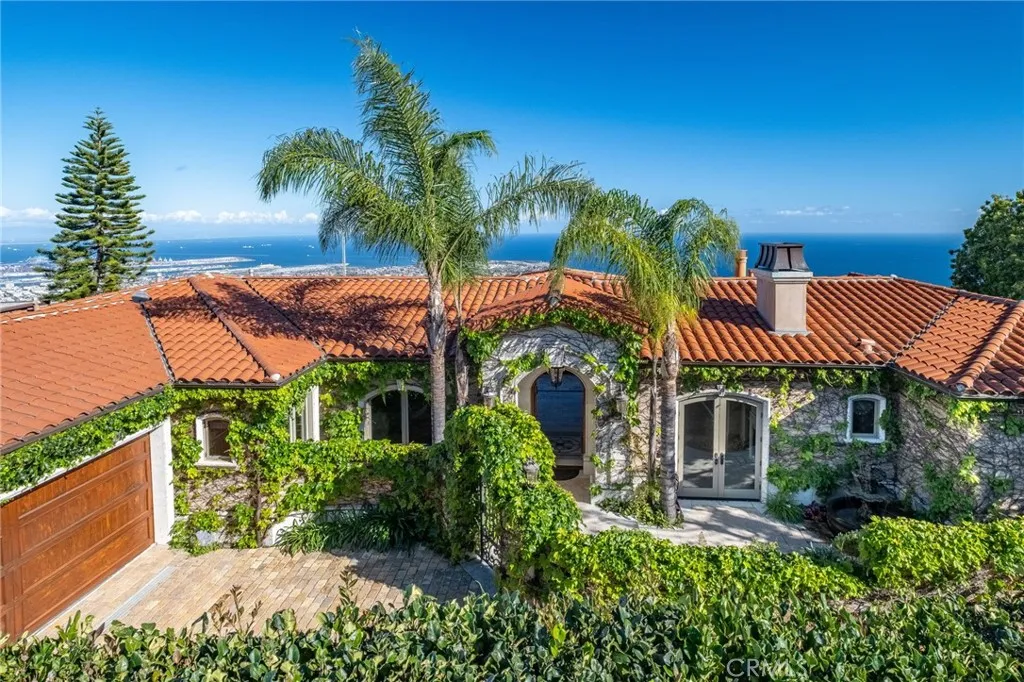 Perched high atop the prestigious Palos Verdes Peninsula, this exceptional single-level Mediterranean estate captures breathtaking 180-degree views of the Pacific Ocean, Catalina Island, and the Southern California coastlineoffering the ultimate in seamless indoor-outdoor living. Custom built in 2010 this home showcases the finest materials and craftsmanship throughout. Venetian plaster walls, antique-glazed moldings, and bespoke wood cabinetry evoke timeless old-world elegance, thoughtfully paired with modern luxury amenities. Step into a private sanctuary where an open-concept floor plan invites effortless entertaining and relaxed everyday living. Expansive travertine flooring flows from the interior to the outdoors through a dramatic 24-foot Fleetwood pocket door, creating a true extension of living space and drawing your eye to the spectacular view deck beyond. The outdoor experience is unparalleledfeaturing an oversized spa, tranquil reflecting pools, soothing fountains, multiple seating areas, two fire pits, and a fully equipped outdoor kitchen and bar, all designed to embrace the stunning coastal backdrop. Inside, the home offers four spacious bedrooms and four bathrooms, designed with both comfort and functionality in mind. The chefs kitchen is outfitted with top-of-the-line appliances, a walk-in pantry, and a custom dining nook. The luxurious primary suite serves as a private retreat, complete with a fireplace, steam shower, spa tub, and dual walk-in closets. Completing the property, the terraced hillside has been thoughtfully landscaped with flagstone walkways and