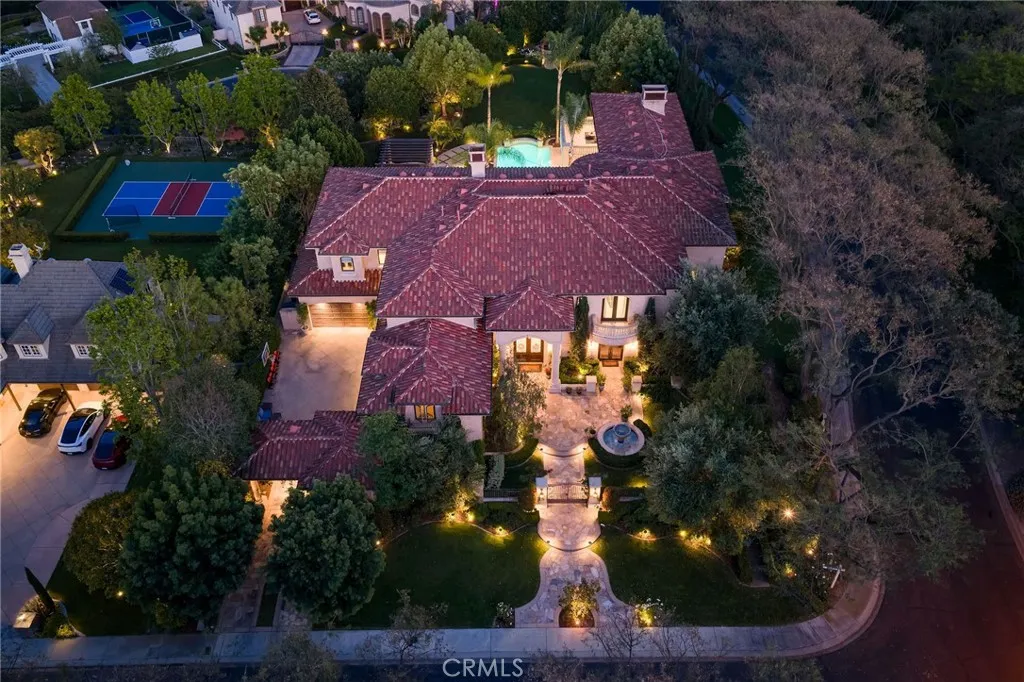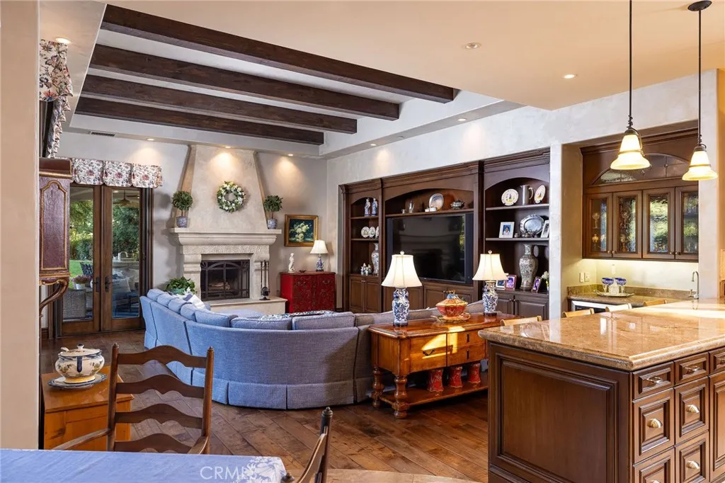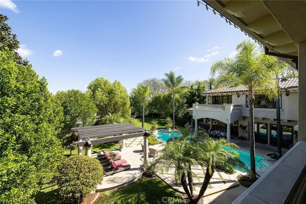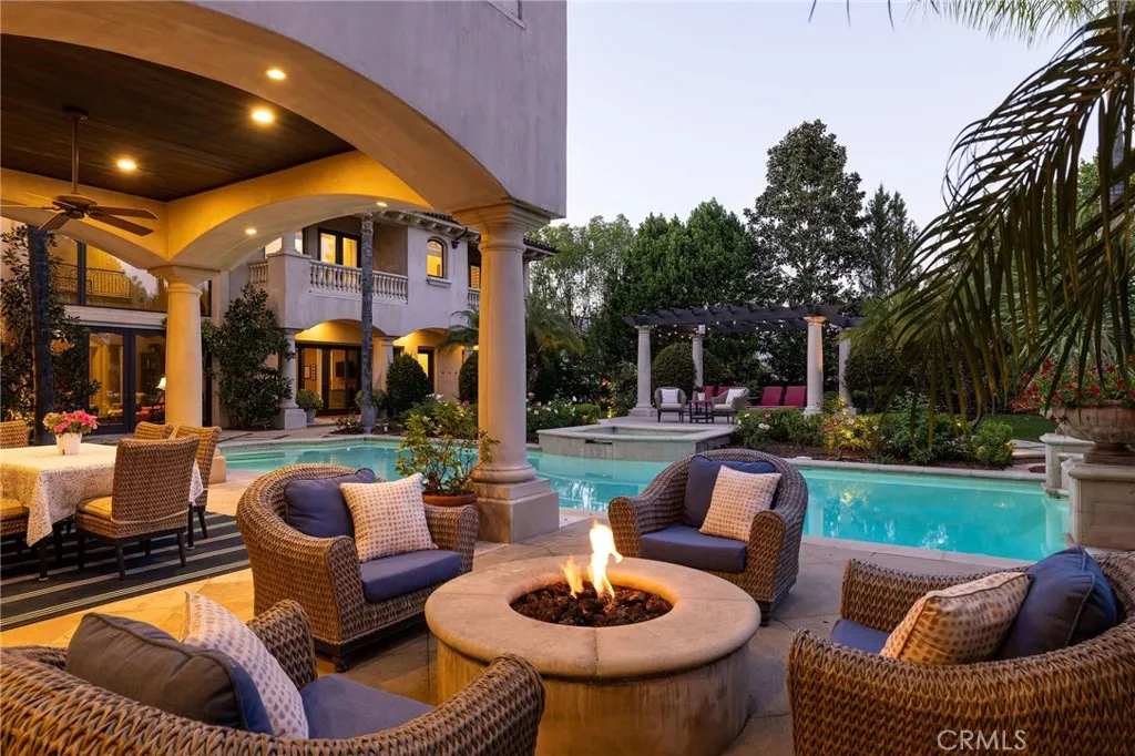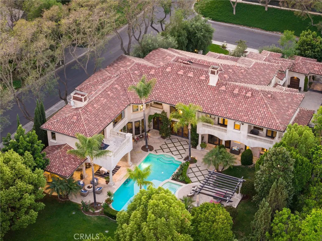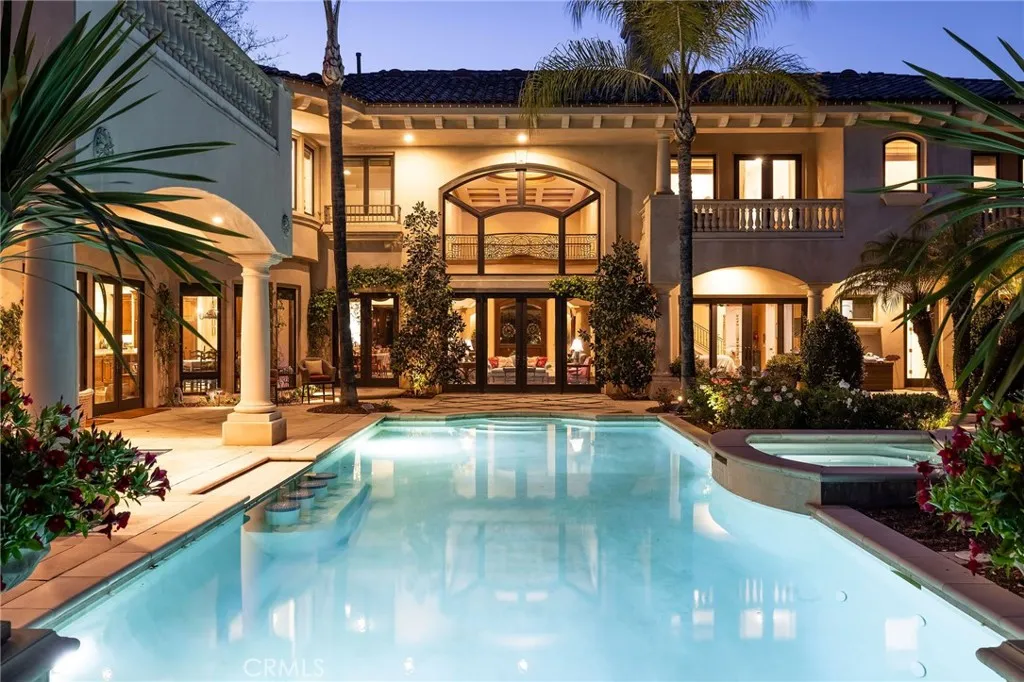 Welcome to 26 Palomino, located within the highly desirable guard-gated community of Coto de Caza. Set on approximately 1 acre in the Woods neighborhood, this custom estate offers 6 beds/7 baths with timeless architectural detail throughout. Upon arrival you see the lush Mediterranean curb appeal with a gated court yard and a gated motor court with porte-cochere leading to a 6.5-car garage. From the moment you enter the home, youre greeted by soaring two-story ceilings, a stunning rotunda above the staircase, and walls of doors and windows that frame the backyard and flood the home with natural light. Rich wood and stone flooring, solid wood doors, detailed molding, and beautiful arched hallways carry throughout much of the home. The expansive kitchen features a large island, high-end appliances, double dishwashers, and a bright breakfast nook detailed with bay windows. It opens seamlessly to an oversized family room with soaring beamed ceilings, wood floors, and a statement fireplace. A wine cellar, full walk-in pantry, and abundant storage add both function and convenience. Equally impressive, the living room has a stunning fireplace and soaring ceilings, dining room with a lighted inset ceiling, and an office with floor-to-ceiling woodwork and coffered ceilings. Additional downstairs highlights include a downstairs bedroom with en-suite bath, dual staircases, and an oversized laundry room. Upstairs, the primary suite is its own private sanctuary, featuring a sitting area, fireplace, balcony with hillside and mountain views, 2 additional flex rooms, and a spacious walk-in
