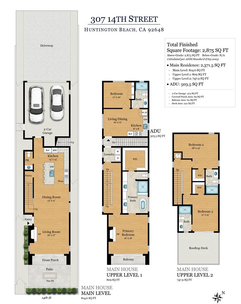 Now available for private tours and nearing completion, this stunning residence is expected to be delivered by July 1, 2026. Experience luxury New Construction by Olive Avenue Homes, with premier OCEAN-VIEWS, just two blocks from the sand! Thoughtfully designed for both luxury and versatility, the home includes a fully permitted 1-bedroom, 1-bathroom ADU with a private entrance, staircase, full kitchen, and in-unit laundryperfect for guests, rental income, or multigenerational living. In addition to the finished two-car garage, the property offers a rare, deep two-car driveway for added convenience. Blending warmth with modern sophistication, the home showcases exceptional craftsmanship and high-end finishes throughout, including custom white inset cabinetry, marble countertops, European oak flooring, premium appliances, smart home wiring, Andersen 100 Series windows, Windor multi-slide doors, Level 5 smooth drywall, designer lighting, and luxury tile. A fully owned solar system enhances efficiency and long-term value. The open-concept main level features 10-foot ceilings and seamlessly connects the kitchen, dining, and family room to a beautifully designed front patiocreating the ultimate indoor-outdoor living experience. Upstairs, the second level offers a luxurious primary suite with a spa-inspired bath, private balcony, and walk-in closet, along with a conveniently located laundry room. The attached ADU is also accessible from this level, adding flexibility to the floor plan. The third floor features two additional bedrooms, each with en-suite bathrooms and walk-in clos