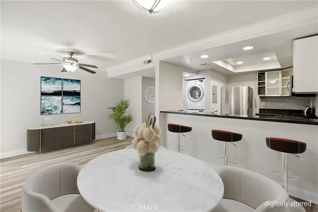 Tucked into the historic French Park neighborhood, this 2-bedroom, 2.5-bath townhome offers the rare combination of space, privacy, and walkable city living. Its one of just twelve residences in a boutique gated community, giving the whole enclave a peaceful, tight-knit feel. Step inside to a living room centered around a cozy fireplace. The kitchen flows into an open family room and dining area with granite counters and a breakfast bar perfect for casual bites and conversation. Sliding glass doors open to a private patio thats ready for grilling or gathering with friends. A half bath, stacked washer and dryer, and extra storage round out the main level. Upstairs, a skylight brightens the hallway and linen storage, leading you to two generous bedroom suites. The primary suite features two closets and a full en suite bath. The second suite has extra-tall ceilings, a walk-in closet, and its own private full bath, making it ideal for family, guests, or a home office setup. Recent updates include a new roof and gutters in 2022, along with dual-pane windows throughout. Two dedicated parking spaces in the gated underground garage come with the home, plus additional garage storage. The location is what ties it all together. Youre a short walk from 4th Street Market, the Orange County School of the Arts, the Civic Center, the OC Streetcar, and all the creative energy of downtown Santa Anas 4th Street Artist Village. Main Place Mall, the historic courthouse, the train station, and the 5, 55, and 22 freeways are all just minutes away, making this one of the most connected spots in th