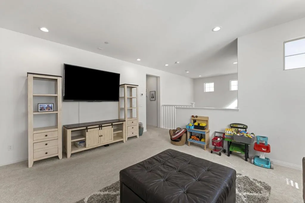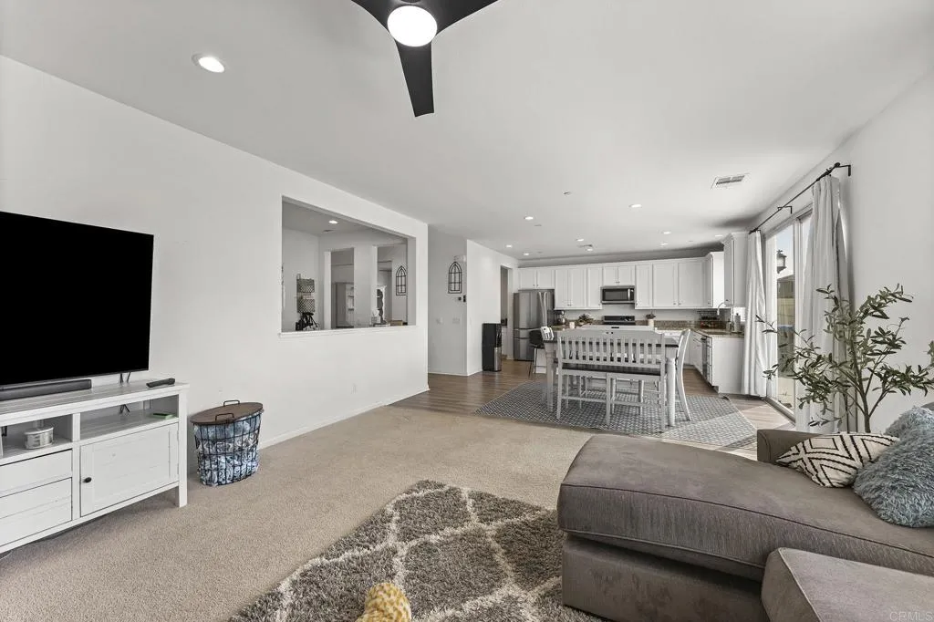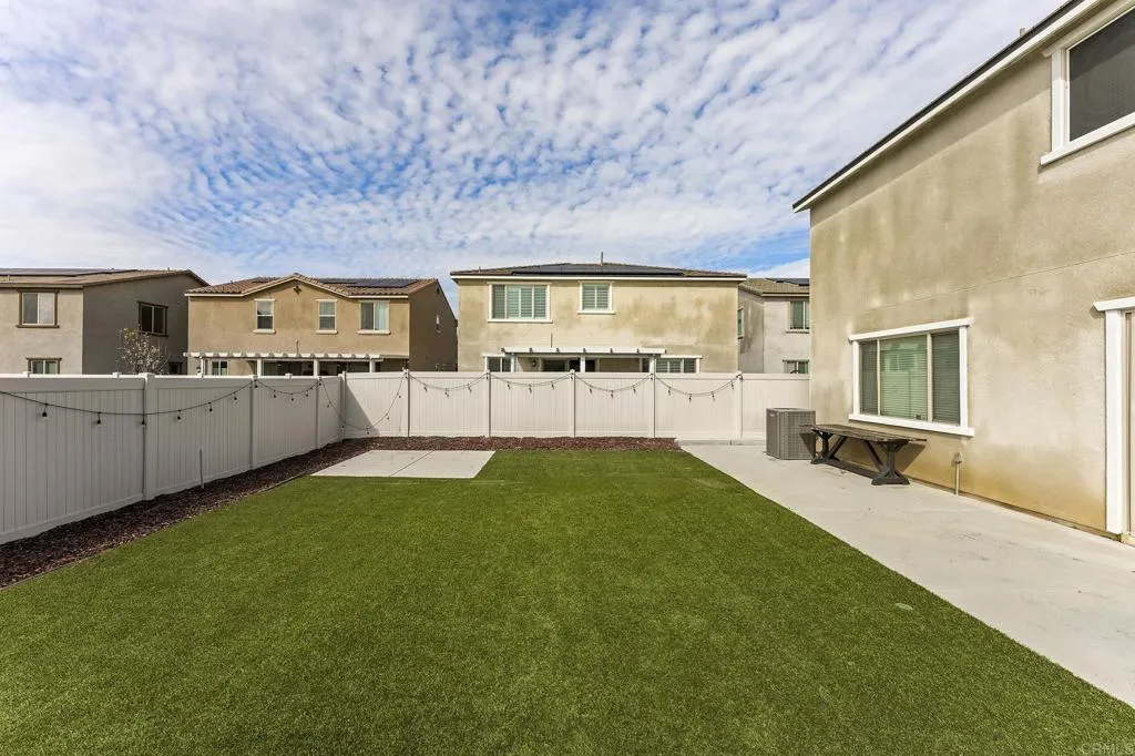 Immaculate Pulte Pinewood Home in highly coveted Spencer's Crossing community featuring 5 Large Bedrooms, 3.5 Baths plus a den/office, and a large loft and over 3300 SF. This two-story home has over $80,000.00 in premium upgrades inside and out. The open floor plan has flowing luxury vinyl plank floors, a guest suite downstairs with a full bath, high ceilings with upgraded 8' interior doors, and custom blinds for perfect control of natural light. The kitchen and dining area are open to a large family room, making it ideal for large gatherings, plus a bonus activity center or flex office space. Upstairs the primary suite is gorgeous and large enough for a King Bed set and sitting area. You will love the walk-in closet. The bath area has a soaking tub, a separate shower, and two sinks. The loft upstairs is yet another great space for multiple uses, and the 3 additional bedrooms are large, open, and bright. The exterior front area is easy maintenance, and the back has a lovely patio area for a future Pergola or firepit. Easy care artificial turf is excellent for activities, entertainment, and games. Landscape is drip irrigation, and also room for a pool and raised garden beds. Home has Leased Sunpower Solar Panels with 4.2KW. HOA includes Pools, Parks, Recreation Center, Sports Park, and more. Minutes to schools, shopping, freeways, and Temecula Wine Country.