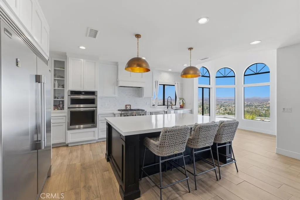 Welcome home to your private sanctuary in the prestigious Canyon Lake Estateswhere breathtaking sunsets, expansive views, and refined living come together in perfect harmony. This stunning upgraded estate showcases a wide-open floor plan with soaring beamed ceilings, walls of windows, and glass doors that flood the home with natural light while framing spectacular panoramic views. The grand living and dining areas feature a striking stone fireplace and flow seamlessly into the heart of the home: a beautifully upgraded chefs kitchen Outfitted with premium Jenn Air appliances, including a double-wide built-in refrigerator/freezer, six-burner cooktop, quartz countertops, and a Calcutta Gold island, this space is designed for both everyday living and unforgettable gatherings. Custom cabinetry, abundant storage, and a spacious walk-in pantry complete the experience. The luxurious primary suite is a true retreat, offering a private sitting area with serene views overlooking the sparkling pool and spa. Thoughtfully designed, it also includes convenient access to a large, enclosed dog run. The spa-inspired primary bathroom features a soaking tub, oversized walk-in shower, dual vanities, a built-in refrigerator and coffee station, and two expansive walk-in closets with custom cabinetry. Step outside to your own resort-style backyard, complete with a large covered patio perfect for relaxing or entertaining, a stunning pool and jacuzzi, and endless views that make every evening feel like a getaway. Car enthusiasts and adventurers alike will appreciate the two oversized garages accommo