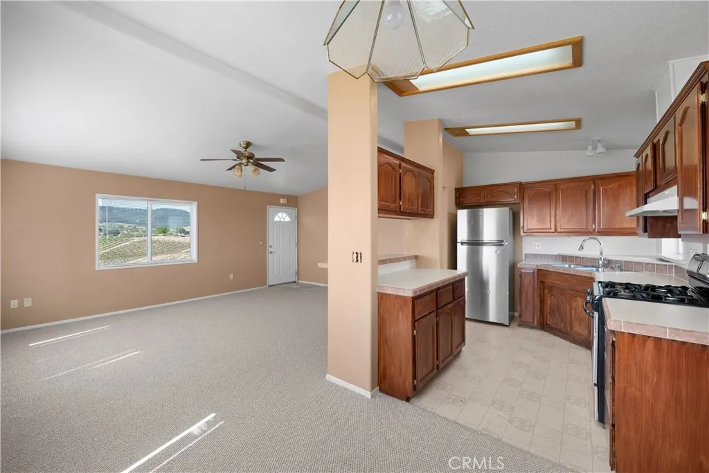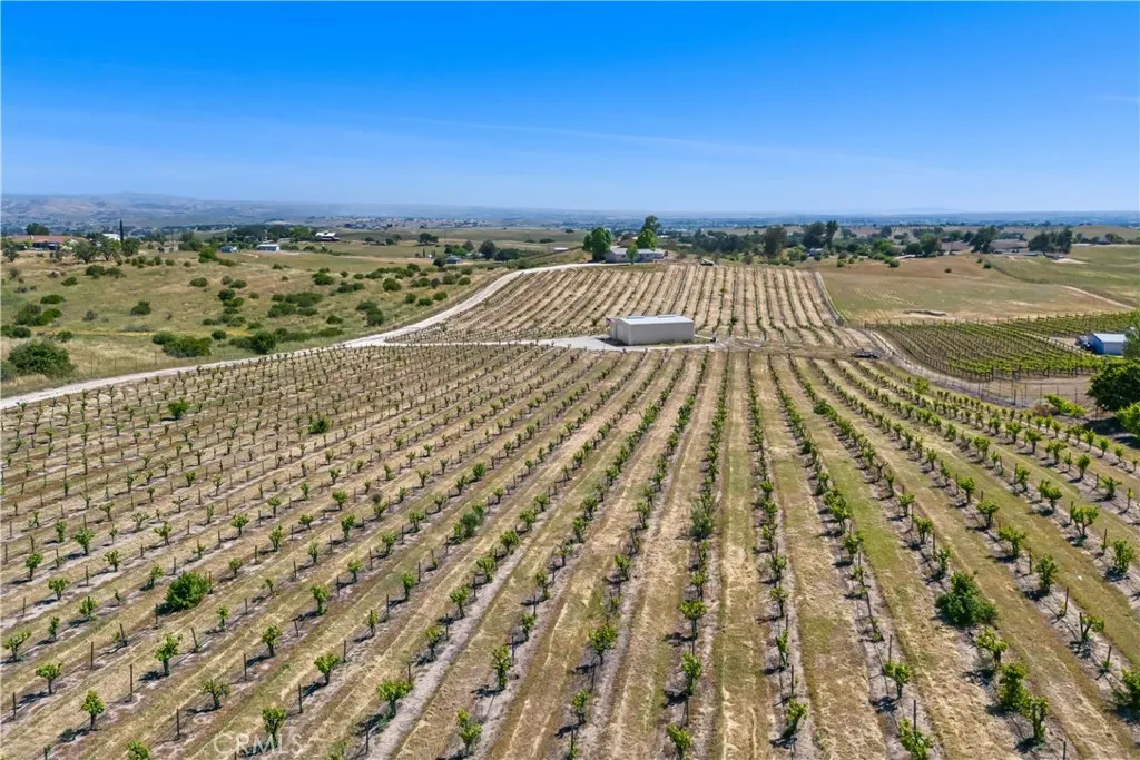 Set on 10.26 usable acres in Paso Robles wine country, this vineyard property combines wide-open space, functional improvements, and panoramic views that stretch across rolling hills and neighboring vineyards. The property is planted with established Zinfandel, Cabernet, and Syrah vines, creating both visual appeal and real agricultural potential. The layout is clean and usable, well-suited for hobby farming, boutique winemaking, or future expansion. The property supports a range of agricultural uses while still appealing to buyers seeking space, privacy, and flexibility. The 3-bedroom, 2-bath manufactured home is permanently affixed (433A) and eligible for traditional financing. Inside, the home offers a bright, open-concept living space with vaulted ceilings and large windows that frame the surrounding landscape from nearly every room. The kitchen opens to the main living area, creating a functional, connected space for everyday living or hosting. New carpet and fresh interior paint make it move-in ready. All bedrooms are well-positioned to capture views, including a primary suite with its own bathroom. An indoor laundry area adds convenience, and the overall layout is simple, efficient, and comfortable. Outside, the setting is what separates this property. A back deck provides a natural place to take in sunsets over the vines, while mature trees and recently improved landscaping around the home create a defined, livable homesite within the larger acreage. The metal barn is a major asset, offering substantial space for equipment storage, workshop use, or agricultural oper