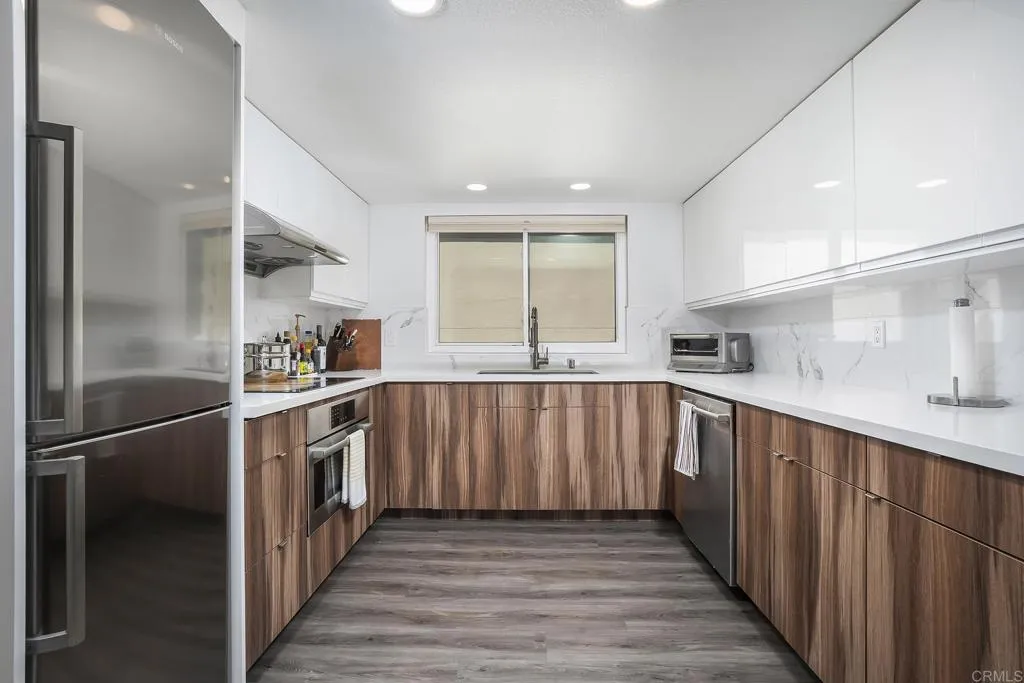 Perched on the top floor, this exceptional corner residence in Hillcrests coveted Uptown District offers refined urban living. This 2-bed, 2-bath home spans 949 sq ft and is filled with natural light, creating an inviting and sophisticated atmosphere. The thoughtfully redesigned kitchen showcases premium Bosch appliances, sleek cabinetry, and modern finishesideal for both everyday living and elegant entertaining. Spa-inspired bathrooms, updated in 2018, add a touch of comfort and style. Enjoy seamless indoor-outdoor living with a private balcony, perfect for relaxing or taking in the surrounding views. Additional highlights include secured garage parking with a Tesla charging station. Residents enjoy access to resort-style amenities including a sparkling pool, a fully equipped fitness center, outdoor BBQ area, and a dedicated dog parkperfect for both relaxation and an active lifestyle. Ideally located in a vibrant, walkable neighborhood just moments from top dining, shopping, and entertainment, this home offers the perfect blend of luxury, comfort, and lifestyle.