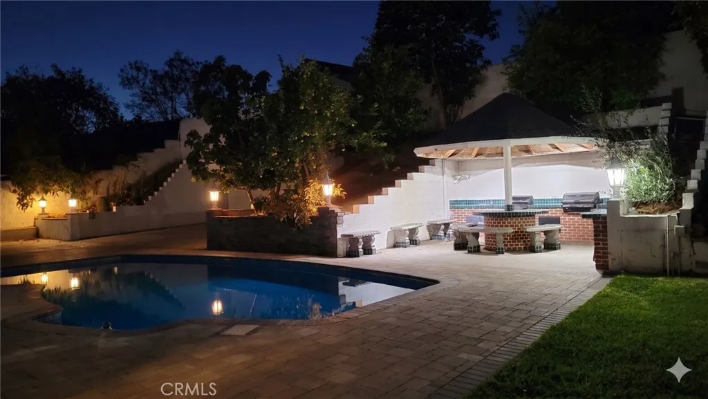Welcome to this beautifully upgraded home nestled in one of North Diamond Bar's most desirable neighborhoods with easy access to parks, schools, shopping, dining, and the 57 & 60 freeways! This spacious 6-bedroom, 4-bathroom residence offers a versatile floor plan perfect for multi-generational living. The main level features 2 bedrooms and 1 full bathroom, ideal for guests or extended family. Upstairs offers 4 bedrooms and 3 bathrooms, including a primary suite, plus a convenient laundry area. A second laundry hookup is also available in the garage. At the heart of the home is a fully upgraded gourmet kitchen featuring a large center island, seamlessly flowing into the open-concept living room, family room, and dining area an ideal layout for everyday living and entertaining. Whether hosting a dinner party or enjoying a quiet family evening, this open and airy space truly brings everyone together. Step outside to your private pool oasis surrounded by beautifully landscaped grounds featuring new pavers around the pool area, a stylish covered patio deck with glass walls, and clean concrete side yards. The expansive backyard is an entertainer's dream, complete with a large gazebo, built-in BBQ grill, stove, and entertainment table everything you need to host in style. The lush yard is also home to a wonderful variety of fruit trees including lemon, orange, avocado, loquat, pomegranate, and more a true garden paradise. A rare bonus the long side yard is accessible through an automatic remote-controlled gate, providing generous space for RV parking or extra vehicles a fe
