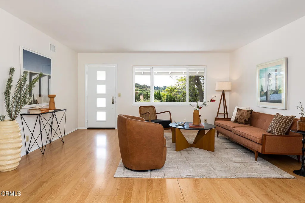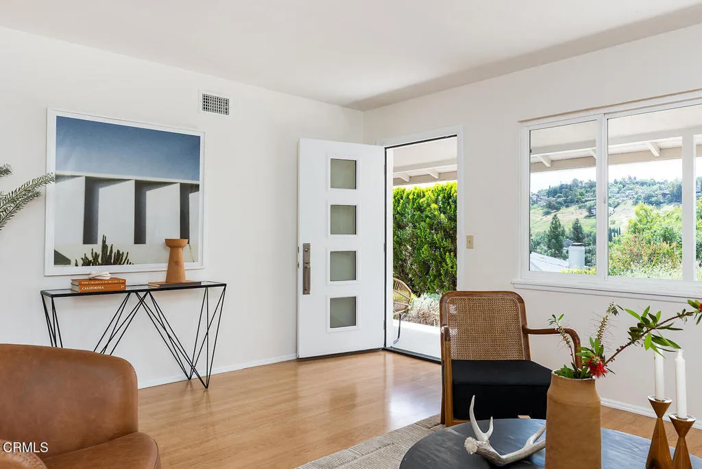 Set above the bustle in a charming hillside neighborhood, this bright 1955 midcentury traditional offers space, comfort, and lovely neighborhood views. A bright, open living and dining area anchors the home, creating an easy flow for everyday living and entertaining.The spacious floor plan includes three bedrooms and two tastefully updated bathrooms, along with a cheerful kitchen featuring a breakfast nook. Each bedroom offers generous closet space, while thoughtful upgrades - central air and heat, updated plumbing and electrical, newer double-pane windows, and fresh interior and exterior paint - add to the home's ease and livability.Outdoors, the garden is a highlight, with drought-tolerant landscaping, roses, and planter boxes. A spacious deck creates the perfect setting for dinners under the stars or watching neighborhood fireworks on the 4th of July. The upper yard adds even more flexibility - ideal for play, gardening, or simply enjoying the space.A two-car garage with extra storage space sits at street level, complete with a new automatic door opener. All just moments from some of Northeast LA's favorite spots, including Bub and Grandma's, Dunsmoor, The Grant, Habitat, Lemon Poppy, Little Ripper, and more, plus easy freeway access when you need to get across town. Here you have the best of both worlds: minutes from it all while still feeling a world away.