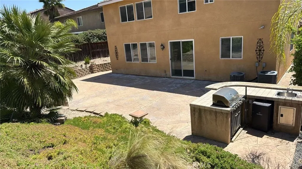 Located in the desirable Redhawk community of Temecula, this beautifully updated home features fresh interior paint, new vinyl flooring downstairs, and new carpeting upstairs, along with a new microwave, dishwasher, and range. The second floor offers 4 spacious bedrooms and a large loft, perfect for entertainment or a flex space. The main floor includes an additional bedroom or office and a full bath. The home boasts 3 full bathrooms, a spacious kitchen with granite countertops and a walk-in pantry, a downstairs laundry room, and both living and family rooms with a cozy fireplace. Step outside to a private backyard featuring a large stamped concrete patio, fruit trees, a built-in BBQ and bar island, and terraced landscapingideal for entertaining. The garage includes a dedicated workshop area, perfect for hobbies or extra storage. Additional features include FiOS internet availability and a built-in security system with cameras. Conveniently located near top-rated schools ,just steps from Helen Hunt Jackson Elementary and Great oak high school, parks, shopping, and Redhawk Golf Coursethis is a home you dont want to miss! Virtual Staging.