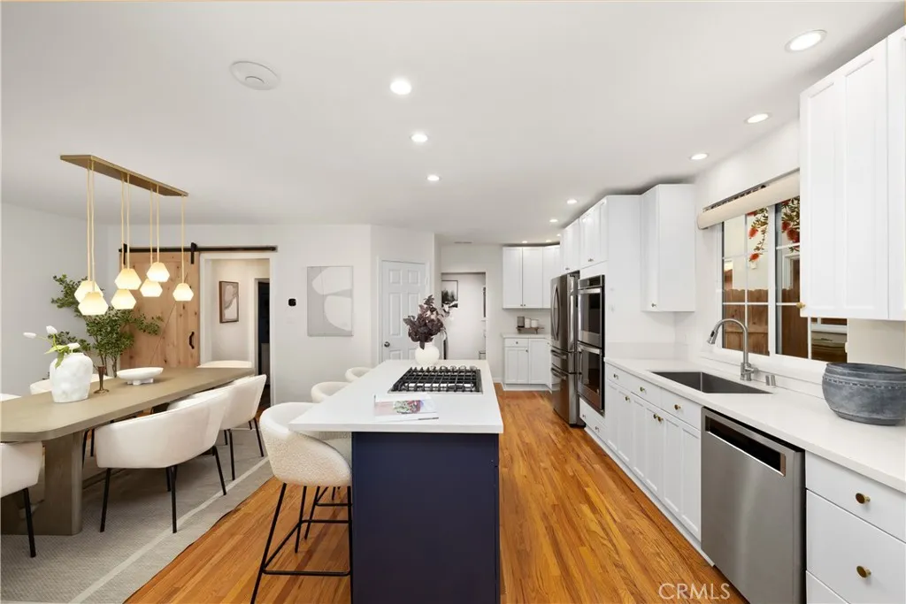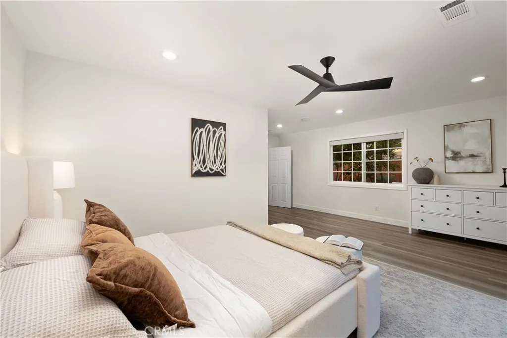 Welcome to sought-after Walnut Acres, where modern upgrades and effortless California living come together in this beautifully renovated, move-in ready single-story residence. Situated on a flat lot in one of Woodland Hills most desirable neighborhoods, this thoughtfully improved home offers approximately 1,932 square feet of stylish living space with 3 bedrooms, 2 bathrooms, and exceptional indoor-outdoor functionality. Freshly repainted inside and out, the home welcomes you with hardwood floors, recessed lighting, dual-pane windows, and a bright, inviting layout designed for everyday comfort and entertaining. The inviting living room is stylish and beautiful and is anchored by a stunning new gas fireplace with remote control, creating a warm and sophisticated focal point. The spacious kitchen has been tastefully updated with gorgeous quartz countertops, refreshed cabinetry, a large center island with cooktop, stainless steel oven, abundant storage, and a desirable walk-in pantry. A separate laundry room adds convenience and offers direct access to the backyard. The expansive primary suite has been enhanced into a true private retreat, featuring a newly reimagined layout, oversized walk-in closet, and upgraded en-suite bath designed for comfort and style. Major system upgrades provide peace of mind, including new HVAC, new tankless water heater, new ABS plumbing, replacement of older cast iron and under-house piping, new attic insulation with added storage and improved access, plus a new drainage system and gutters, as well as a dedicated 240V EV charging. Step outside to