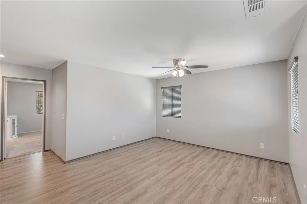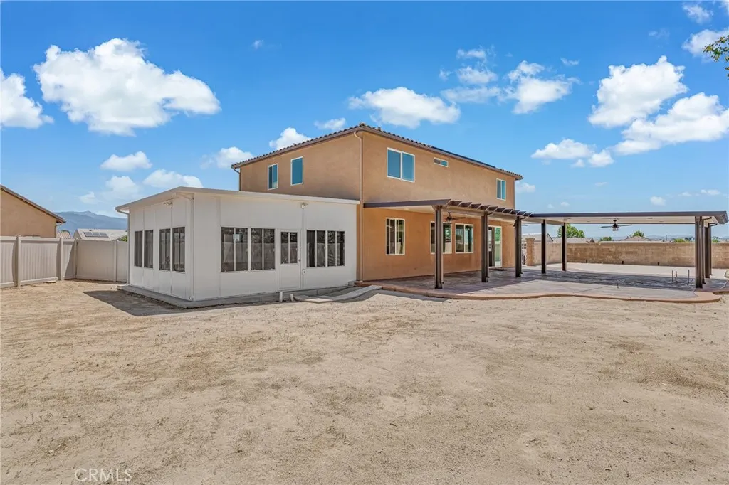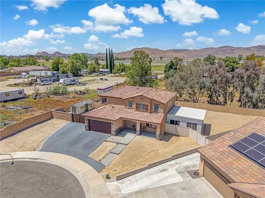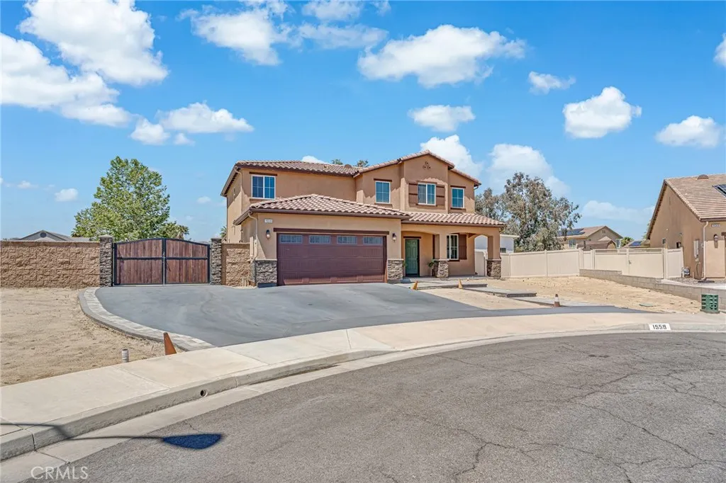 Welcome to this beautiful 4-bedroom, 3-bathroom home located in a quiet cul-de-sac in San Jacinto. Offering both comfort and flexibility, this home is ideal for families or anyone looking for extra space. Step inside to find laminate flooring throughout the living room, kitchen, stairs, and hallways, creating a modern and low-maintenance living environment. The main floor features a convenient bedroom along with a versatile office space that can easily be converted into an additional bedroom. The heart of the home is the spacious kitchen, complete with a huge center island and crisp white cabinetryperfect for cooking, entertaining, and gathering with family and friends. Upstairs, youll find two generously sized bedrooms along with a large primary suite featuring a walk-in closet and a private bathroom with a stand-up shower enclosure. Step outside to a backyard designed for enjoyment and functionality. A newly built patio cover spans a large portion of the yard and sits on a decorative concrete slab, creating the perfect outdoor living space. The patio is equipped with lighting and ceiling fans, making it ideal for relaxing or entertaining year-round. The property also features a new asphalt driveway and an extended cement slab that wraps around to the gated backyardperfect for RV access or additional parking. One of the standout features of this home is the attached bonus unit, originally designed as an entertainment room. This versatile space can easily be used as a bedroom, music studio, home office, or whatever suits your needs. Dont miss this opportunity to own a well-