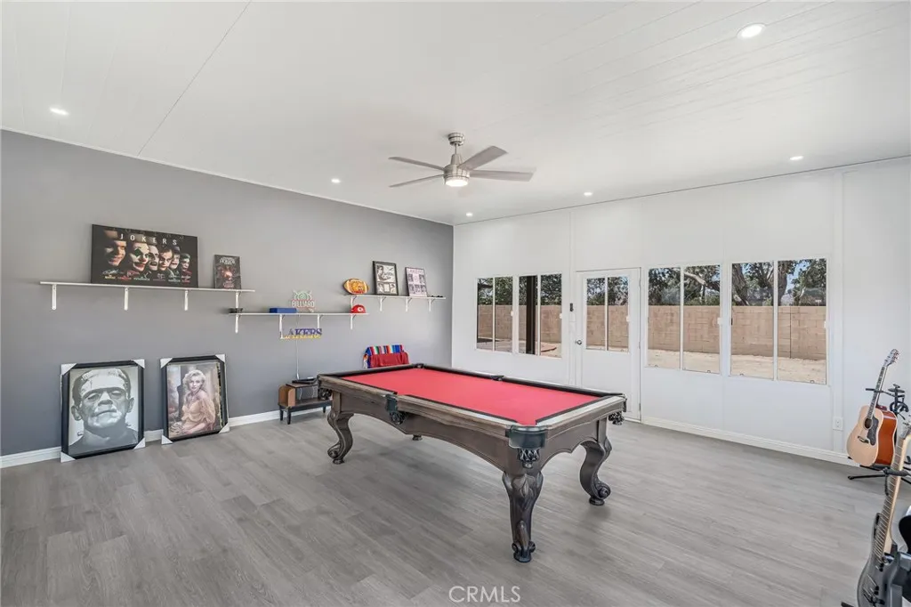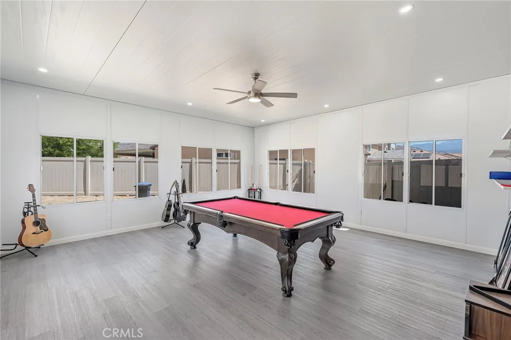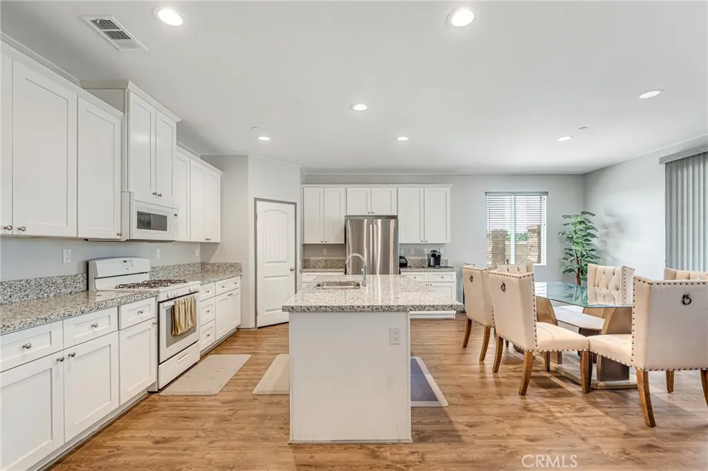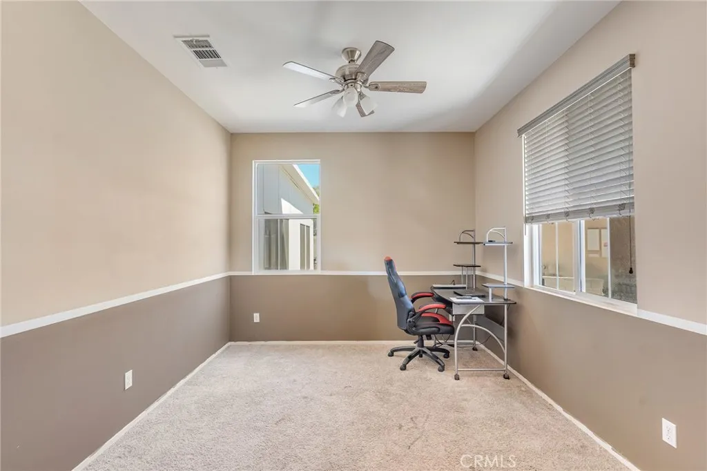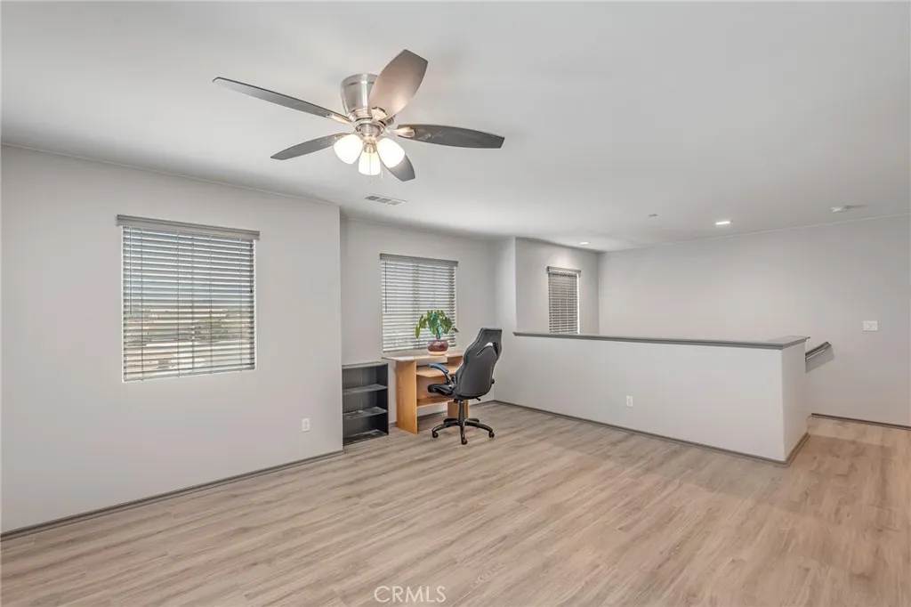 Welcome to this beautiful 4-bedroom, 3-bathroom home located in a quiet cul-de-sac in San Jacinto. Offering both comfort and flexibility, this home is ideal for families or anyone looking for extra space. Step inside to find laminate flooring throughout the living room, kitchen, stairs, and hallways, creating a modern and low-maintenance living environment. The main floor features a convenient bedroom along with a versatile office space that can easily be converted into an additional bedroom. The heart of the home is the spacious kitchen, complete with a huge center island and crisp white cabinetryperfect for cooking, entertaining, and gathering with family and friends. Upstairs, youll find two generously sized bedrooms along with a large primary suite featuring a walk-in closet and a private bathroom with a stand-up shower enclosure. Step outside to a backyard designed for enjoyment and functionality. A newly built patio cover spans a large portion of the yard and sits on a decorative concrete slab, creating the perfect outdoor living space. The patio is equipped with lighting and ceiling fans, making it ideal for relaxing or entertaining year-round. The property also features a new asphalt driveway and an extended cement slab that wraps around to the gated backyardperfect for RV access or additional parking. One of the standout features of this home is the attached bonus unit, originally designed as an entertainment room. This versatile space can easily be used as a bedroom, music studio, home office, or whatever suits your needs. Dont miss this opportunity to own a well-