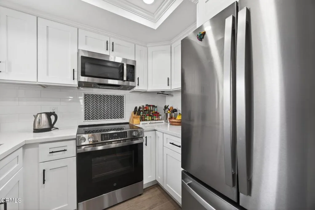 Dreamy Coastal HarborWalk Condo! Nestled between Hollywood Beach and the Channel Islands Harbor, this serene beach area 2-bedroom is ready for weekend getaways or full-time living! Enjoy endless coastal recreation, the gorgeous beach, the weekend Farmers' Market, waterfront dining, several yacht clubs, pathways meandering throughout the harbor and along the sand, plus ocean breezes in a climate where the average summer temperature is 74 degrees! This end-unit is light, bright and move-in ready. There is a new kitchen with stainless steel appliances, quartz counters and white cabinets, newer flooring throughout, a newer bathroom, smooth ceilings, newer window treatments including shutters, built-in shelving, recessed lighting, and custom bamboo that provides privacy on the front deck. With a peek-a-boo ocean view from the front deck and a neighborhood, palm tree and Topa Topa view from the rear deck, there is no question this is a beach home! Only a few minutes to the shoreline for surf, sun bathing and amazing sunsets or launch a kayak or paddle board in the harbor. The association amenities include 4 sparkling pools and hot tubs, tennis, landscaping for the lush grounds, and a community RV and boat storage lot (for an additional fee). The peaceful coastal enclave of Hollywood Beach is situated between Malibu and Santa Barbara on California's Gold Coast, and is only a short drive from downtown Ventura. This condo unit includes tandem parking beneath the home in two dedicated spaces. A large storage closet is adjacent to the carport.