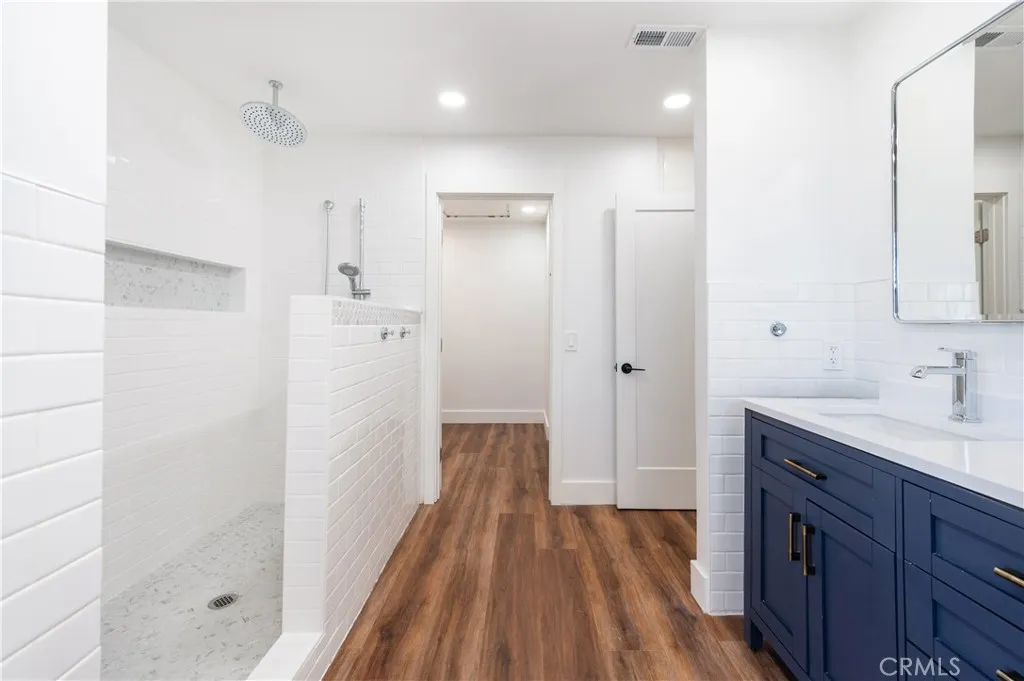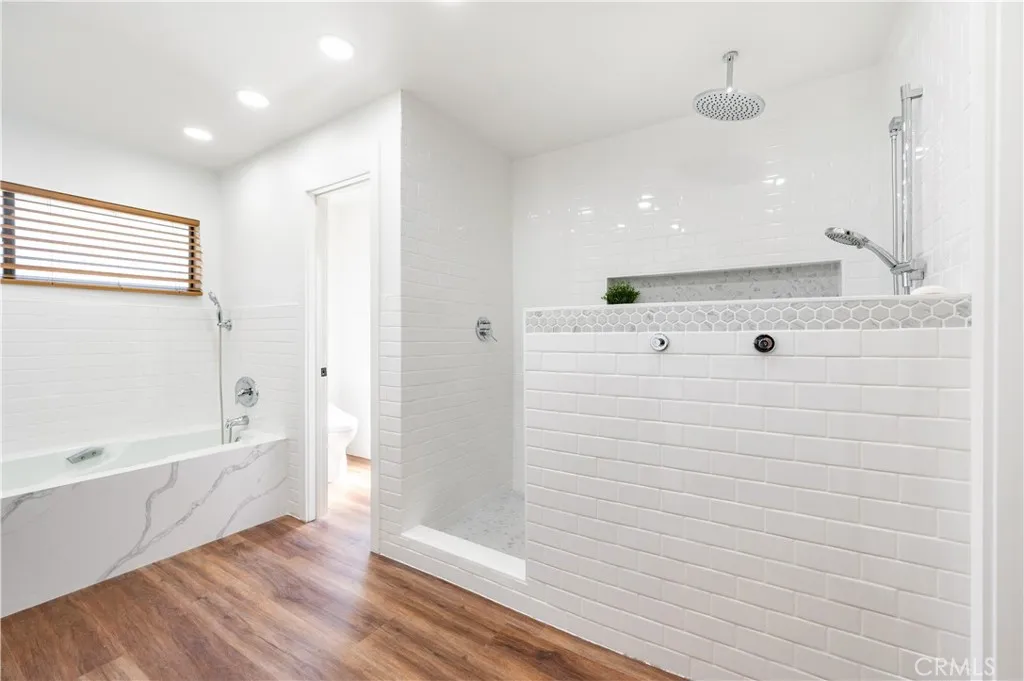 Welcome to this beautifully updated home in the highly sought-after Mesa Verde community of Costa Mesa. This light-filled 2-bedroom, 2.5-bath residence offers approximately 1,757 sq ft of thoughtfully designed living space, blending modern upgrades with a relaxed, coastal-inspired aesthetic. Step through an oversized entry door into a bright, open-concept living and dining area designed for comfortable everyday living and effortless entertaining. The remodeled kitchen features sleek quartz waterfall countertops, stainless steel appliances, abundant cabinetry, recessed lighting, and a charming breakfast nook that opens to the private patio. Enjoy seamless indoor-outdoor living in the fully enclosed patio space backing to a lush greenbeltperfect for relaxing or hosting guests. Upstairs features a spacious primary suite and a secondary en-suite bedroom, both with walk-in closets. The primary suite offers a cozy fireplace, private balcony, and a beautifully remodeled bathroom with dual vanities, soaking tub, and separate walk-in shower. The secondary suite offers flexibility for guests, a home office, or additional living needs. Recent upgrades include new windows, central A/C, smooth-finish walls, recessed lighting throughout, refreshed bedroom spaces, a redesigned upstairs laundry area with brand-new washer and dryer, and tastefully renovated bathrooms with clean, modern finishes. The attached garage features epoxy flooring, an electric vehicle charger, and parking for two vehicles, plus two additional driveway spaces. Residents enjoy community pool and spa amenities. Ideally
