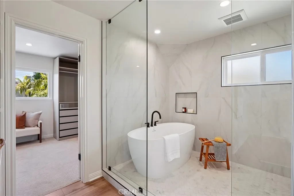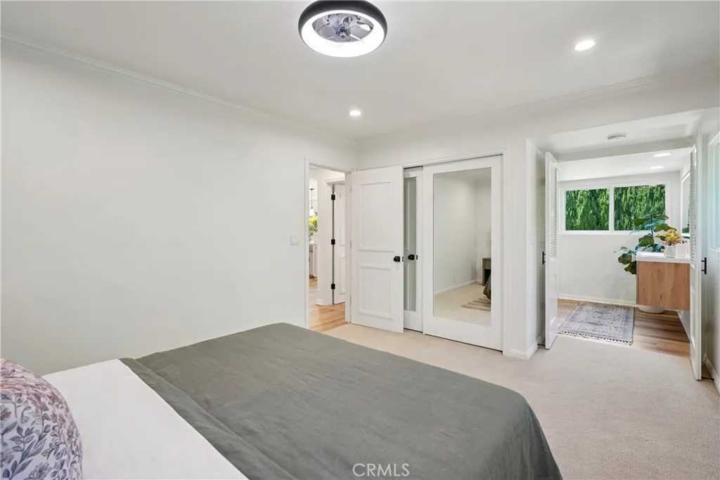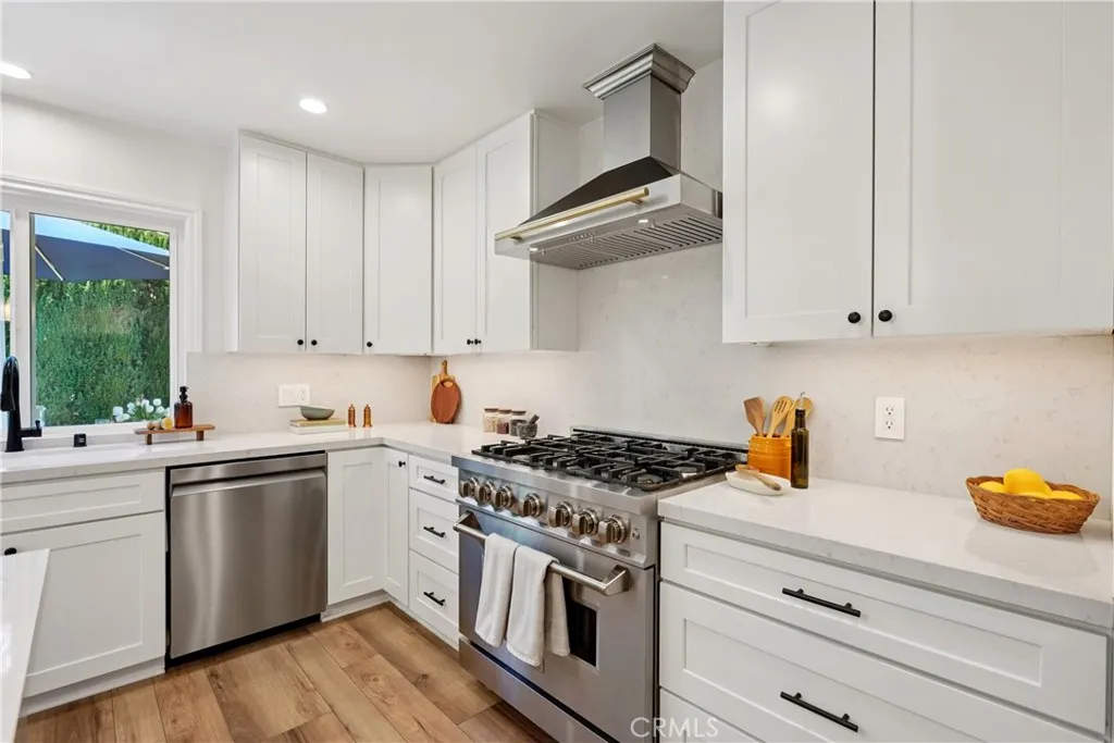 The true heart of the home is a fully renovated kitchen featuring brand new stainless steel appliances, custom cabinetry, and a large center island made for both everyday living and effortless entertaining. A charming granite fireplace grounds the living space, while French doors open to the front patio, creating a bright, welcoming indoor outdoor connection that makes the home feel larger than it is. One of the most distinctive features is the rare third floor loft, which opens to a private utility balcony with open views. This flexible space is equally suited as a media room, home office, or creative retreat. The home also includes a rare walk in safe and a hidden floor safe, offering both practicality and peace of mind. Thoughtful storage runs throughout, further complemented by a large outdoor storage structure in the backyard. The upgrades are extensive: new flooring, fresh interior and exterior paint, new HVAC system, updated electrical panel, select new dual pane windows, upgraded fixtures, new cabinetry, new epoxy garage flooring, automatic irrigation front and back, and new rain gutters on a portion of the home. Outside, a serene and private backyard offers a true escape, while a covered side atrium off one of the bedrooms adds a quiet, versatile outdoor space. The beautifully landscaped front yard and long driveway add to the home's curb appeal and functionality. All of this, just steps from top rated schools, parks, and everything that makes Rossmoor such a special place to call home. Homes with this level of space, flexibility, and craftsmanship rarely come to m