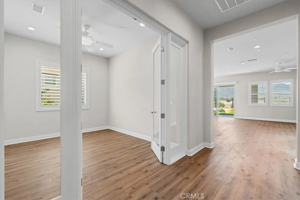 Rare Opportunity in Terramor! Panoramic Canyon Views & Unbeatable Value!! Welcome to 24357 Sunset Vista Drive, located in the award-winning 55+ gated community of Terramor. Positioned on a premier elevated lot with no rear neighbors, this Pulte-built home offers the perfect blend of sophisticated design and a serene natural backdrop. The Vision: Priced significantly below market value to ensure a swift sale, this is a dream for the savvy buyer or investor. While the home requires minor cosmetic attention and some deferred maintenance, the "bones" are spectacular, and the high-end upgrades are already in place. Interior Highlights/Grand Entry: Experience the airy feel of soaring 10-foot ceilings and an open-concept floor plan that maximizes natural light. Gourmet Kitchen: A chefs delight featuring a massive center island, crisp white cabinetry, premium granite countertops, a gas cooktop, and stainless steel appliances. Designer Finishes: Expensive plantation shutters and dual-pane windows throughout the home provide both elegance and energy efficiency. Primary Suite: A true retreat with breathtaking canyon views, a large walk-in closet, and a spa-inspired en suite with a custom barn door and oversized walk-in shower. Functional Spaces: Includes a dedicated office area with glass French doors and an oversized laundry room with extensive counter space for folding. Outdoor Living: The backyard is the showstopper. A glass fence provides an unobstructed, panoramic view of the rolling canyonsthe ultimate setting for your morning coffee or a sunset glass of wine on the covered porc