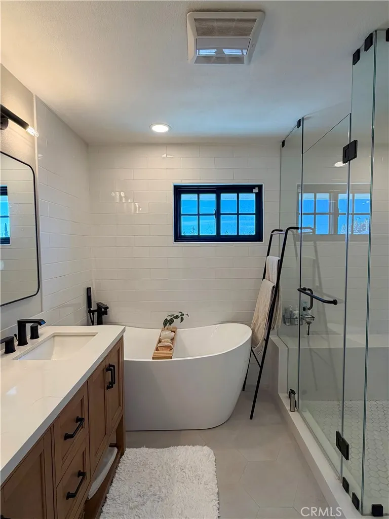 Completely remodeled in 2022, this stunning La Palma home features modern luxury, high-end upgrades, and true turnkey living. The entire property has been thoughtfully renovated, including the interior, front yard, and backyard, creating a seamless blend of style and functionality. Inside, youll find luxury vinyl flooring throughout, complemented by smart home features including smart switches, smart shades, and a smart thermostat paired with a new HVAC system for optimal comfort and efficiency. The home also features Andersen windows, a premium tankless water heater, a newly added water filtration system, a new electrical panel, and a Tesla charger. The chefs kitchen is equipped with top-tier appliances, including a Wolf stove, Sub-Zero refrigerator, and Cove dishwasher. The spacious primary suite features a relaxing retreat with a walk-in closet and a beautifully upgraded bathroom featuring dual sinks, a soaking tub, and a separate walk-in shower. Energy efficiency is a major highlight, with fully paid-off solar panels. Step outside to your private backyard oasis, featuring a fully remodeled pool with convenient mobile app control and a pool heaterperfect for year-round enjoyment and entertaining. Located in a highly desirable La Palma neighborhood, this home is a fully upgraded, modern residence with top-tier amenities inside and out. Seller is Listing Agent